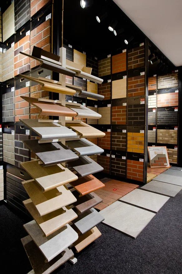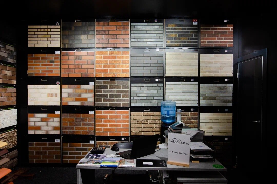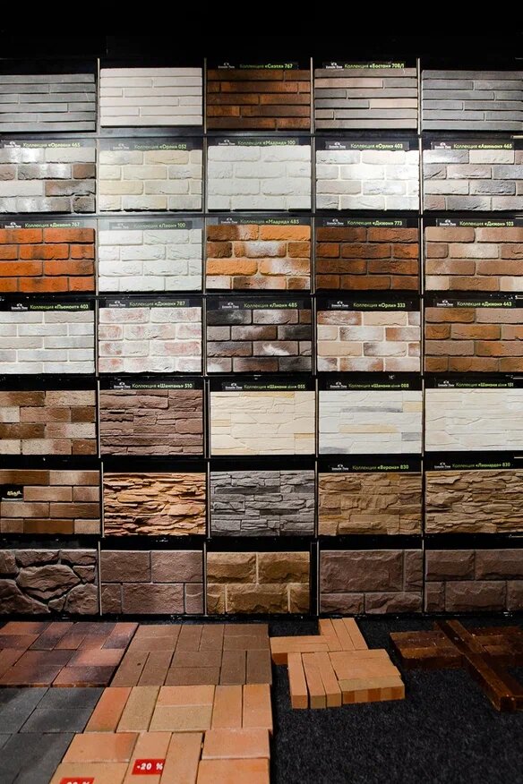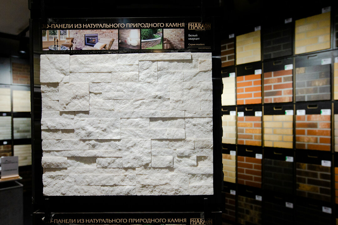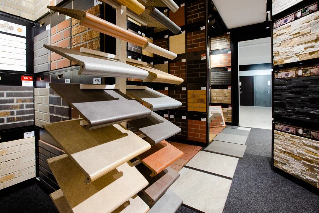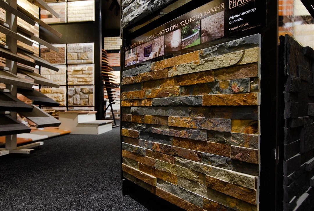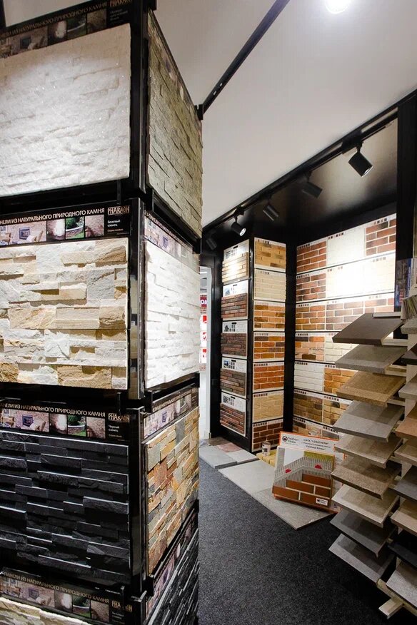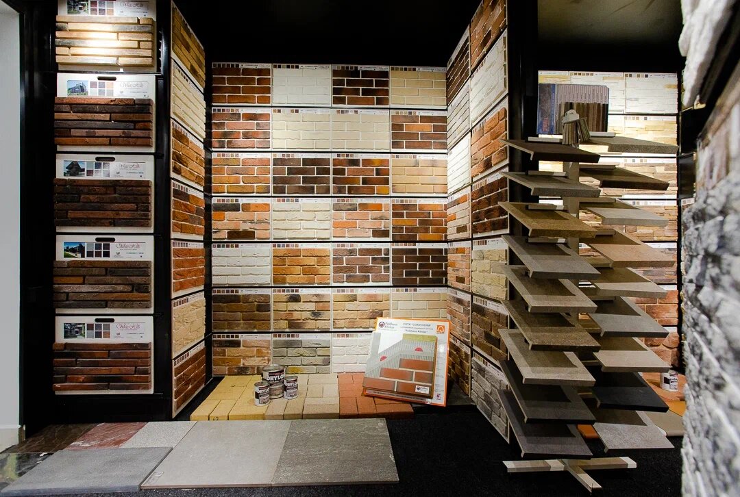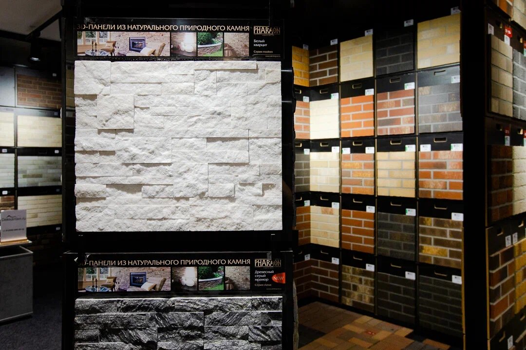 - Хороший ассортимент облицовочных материалов