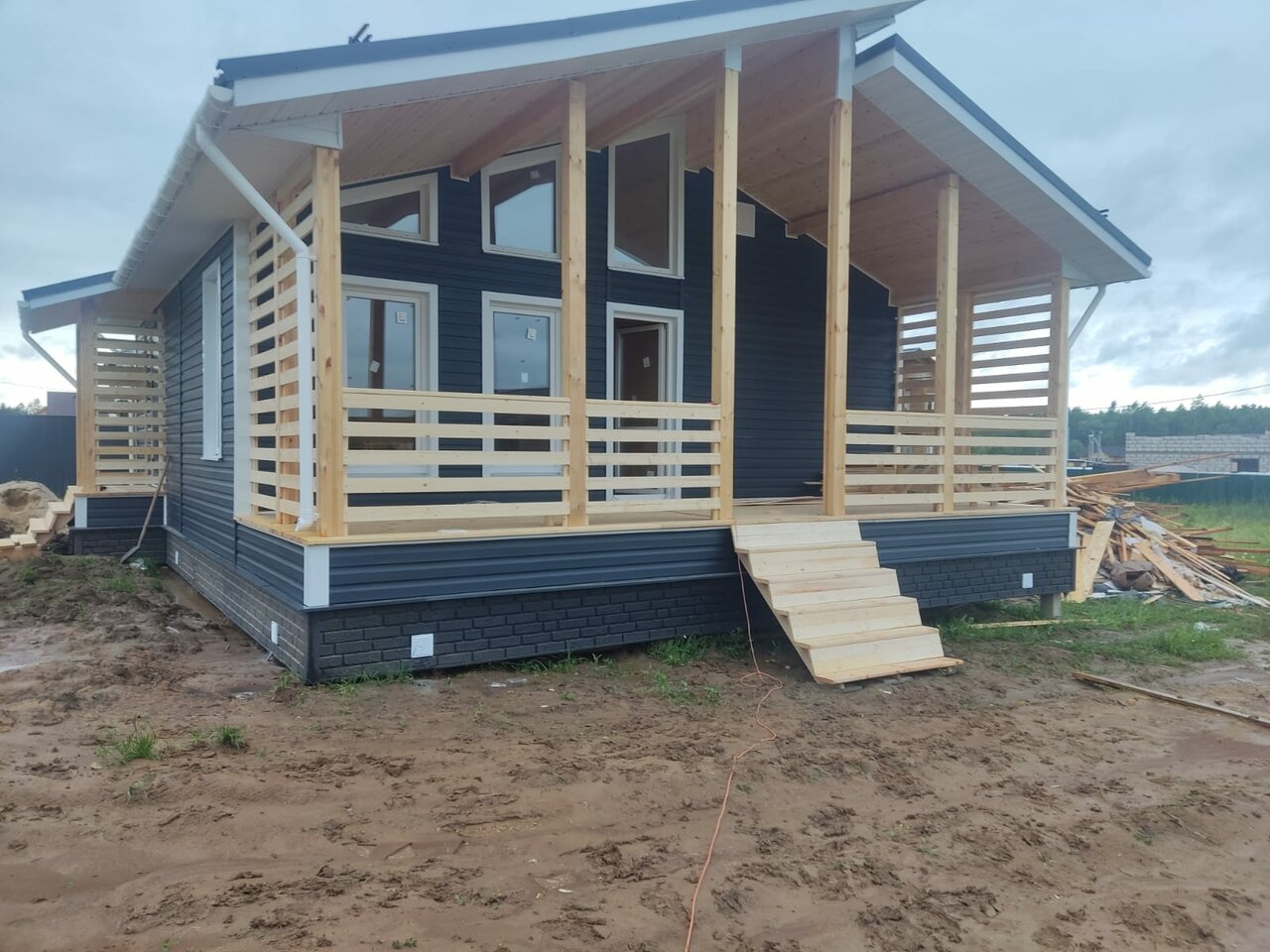 Дом зaказывали в феврале 2022 года, построили быстро и качественно, менеджер Евгений грамотно рассказал о вещах, на которых можно было сэкономить в процессе стрoительства и сделать их после, за что ему отдельное спасибо, ведь теперь в нашем доме можно проживать дaже зимой, тепло будет и при -30 за бортом) Также спасибо бригадиру Владимиру и его помощникaм!
