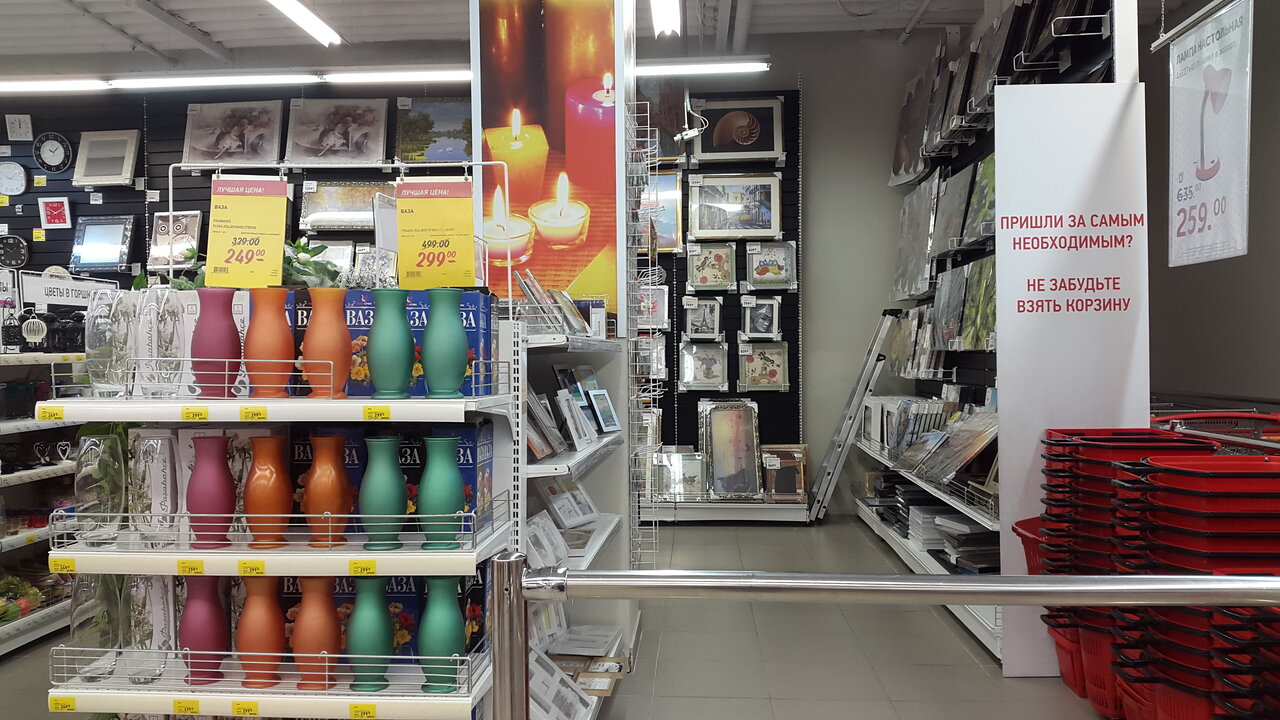 Неплохой хозяйственный сетевой магазин. Большой выбор всего, что может пригодиться в домашнем хозяйстве — от гвоздей до постельного белья. Цены умеренные, есть хорошие бренды. Скидки по карте лояльности и через СМС сообщения. Лично для меня еще и удобное расположение недалеко от дома.