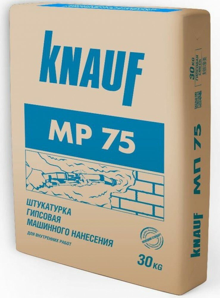 Смесь КНАУФ-МП 75 -предназначена для высококачественного оштукатуривания стен и потолков внутри помещений машинным способом с помощью штукатурных машин, например, PFT G5, PFT G4.Раствор наносится на твердые основания (кирпичная кладка, цементная штук