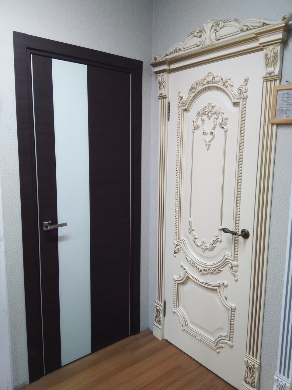 - Большой выбор дверей и напольных покрытий