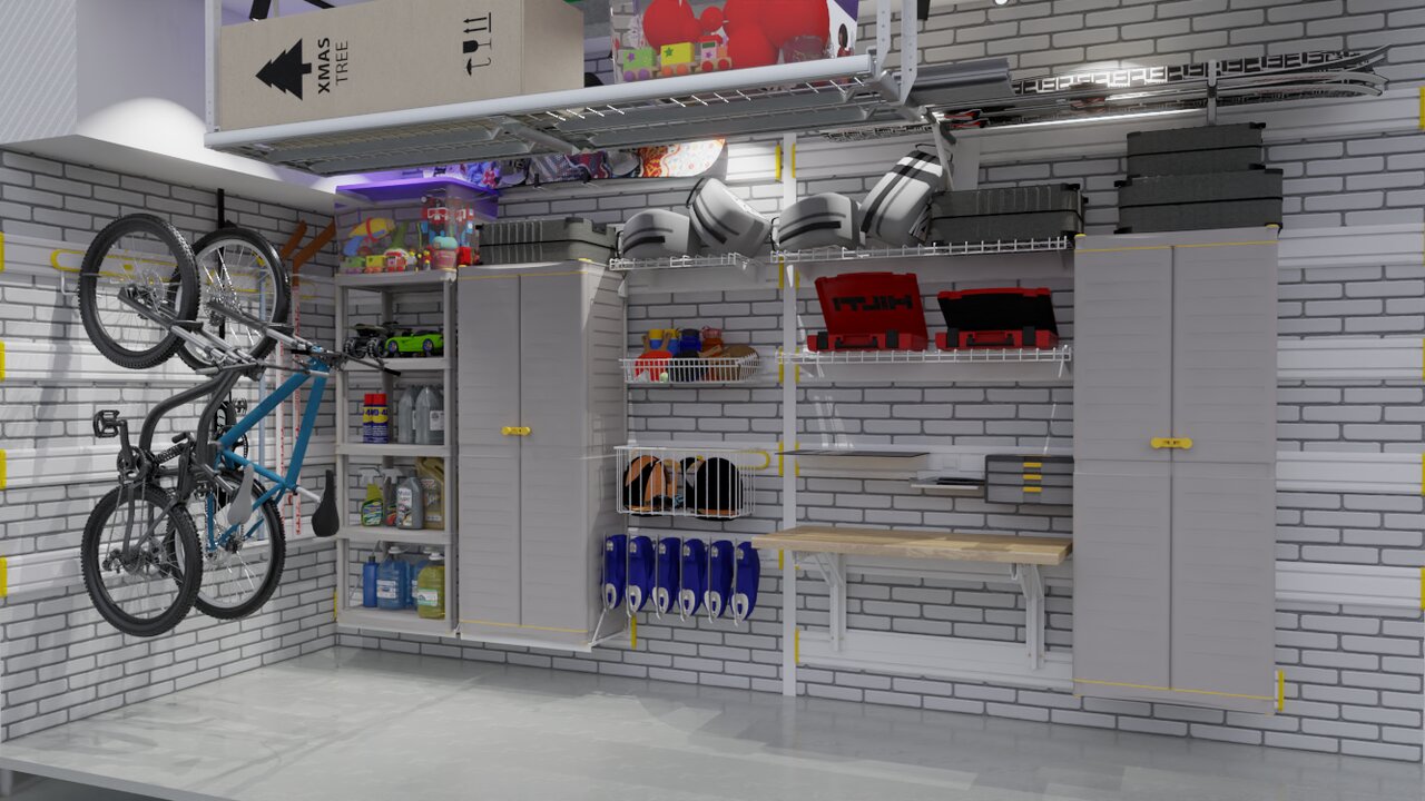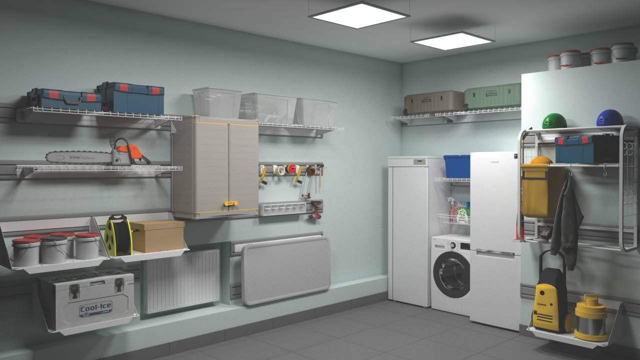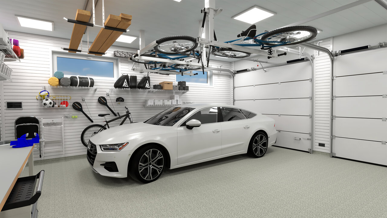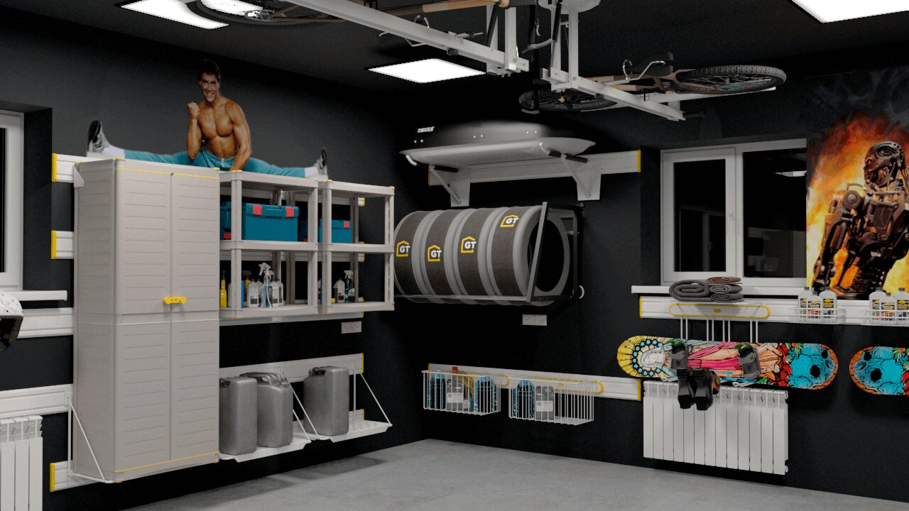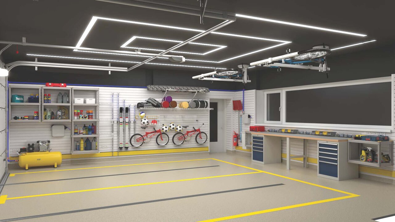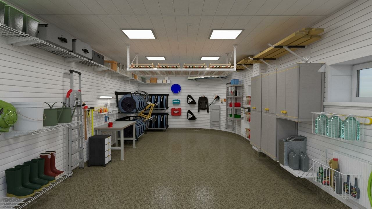 - Обустройство большого гаража системой хранения на направляющих TekTrak 1₽