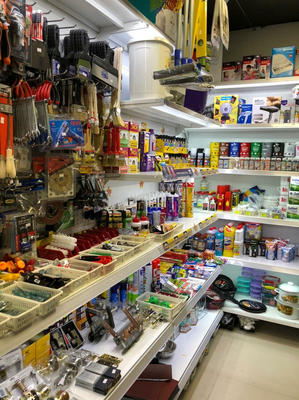 Классный магазин, большой ассортимент, найти можно всё что душе угодно, от ломаты до посуды, очень нравится, что не нужно ходить по разным магазинам когда ищешь что то, само по себе место чистое, даже бы сказала уютное, персонал вежливый и может помочь, посоветовать что то, магазин очень понравился)