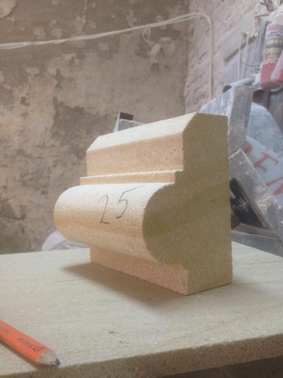 Несмотря на то что элементы отделки песчаником пришлось подгонять по месту (сложный декор), отходов вышло всего 15%. По моей просьбе сделали защитный контур, и пыль при шлифовке не летела на постройки. Респект за такое отношение к работе