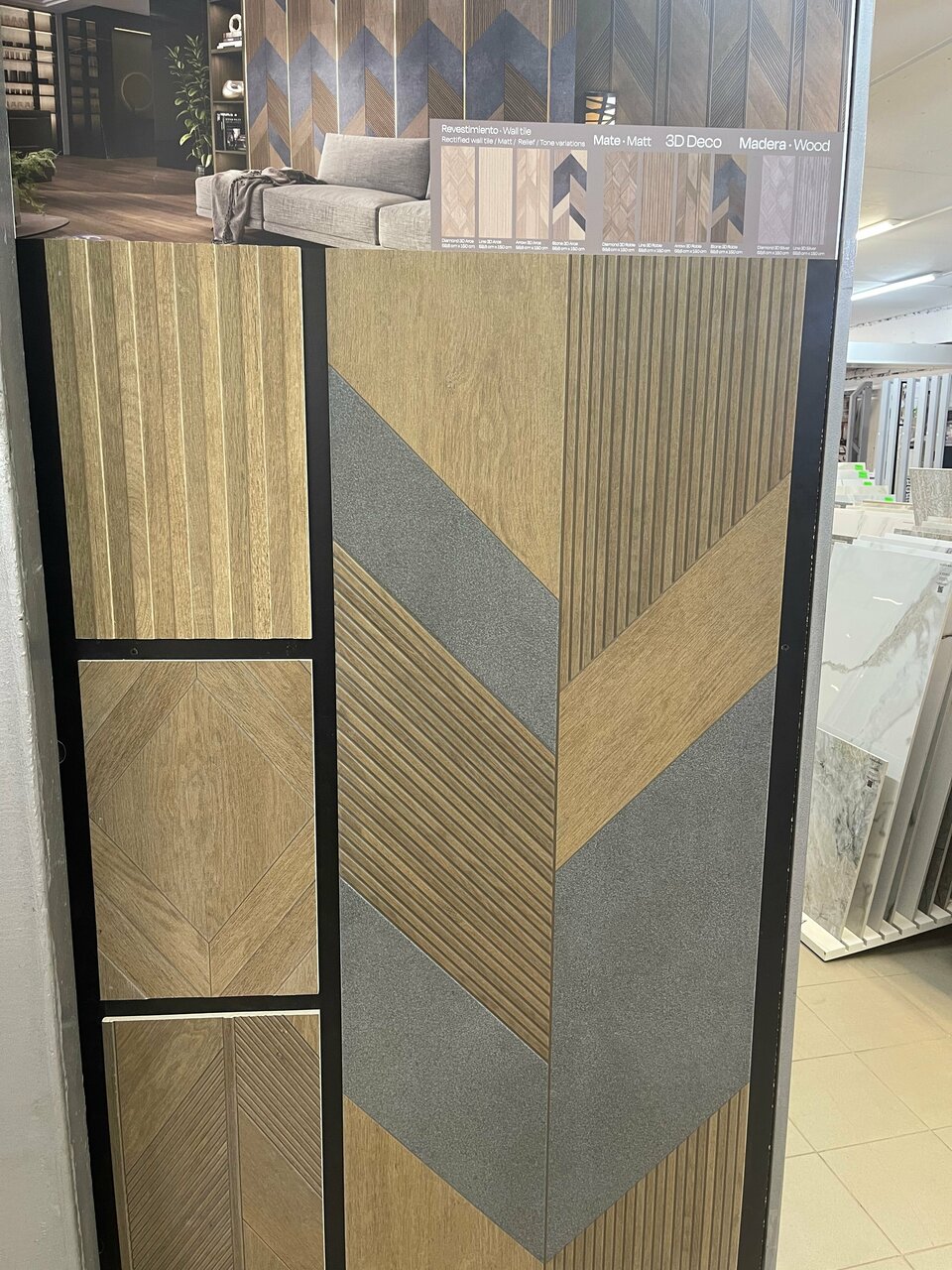 Огромный выбор больше форматного керамогранита. В одном месте всё купила. И на пол, и стены (в т.ч.) фартук. Подкупили цены Мастер сказал, что отличная геометрия у плитки.