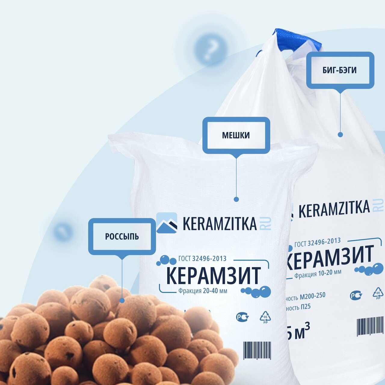 - Керамзит в мешках 40 литров фракции 10-20 мм 80₽