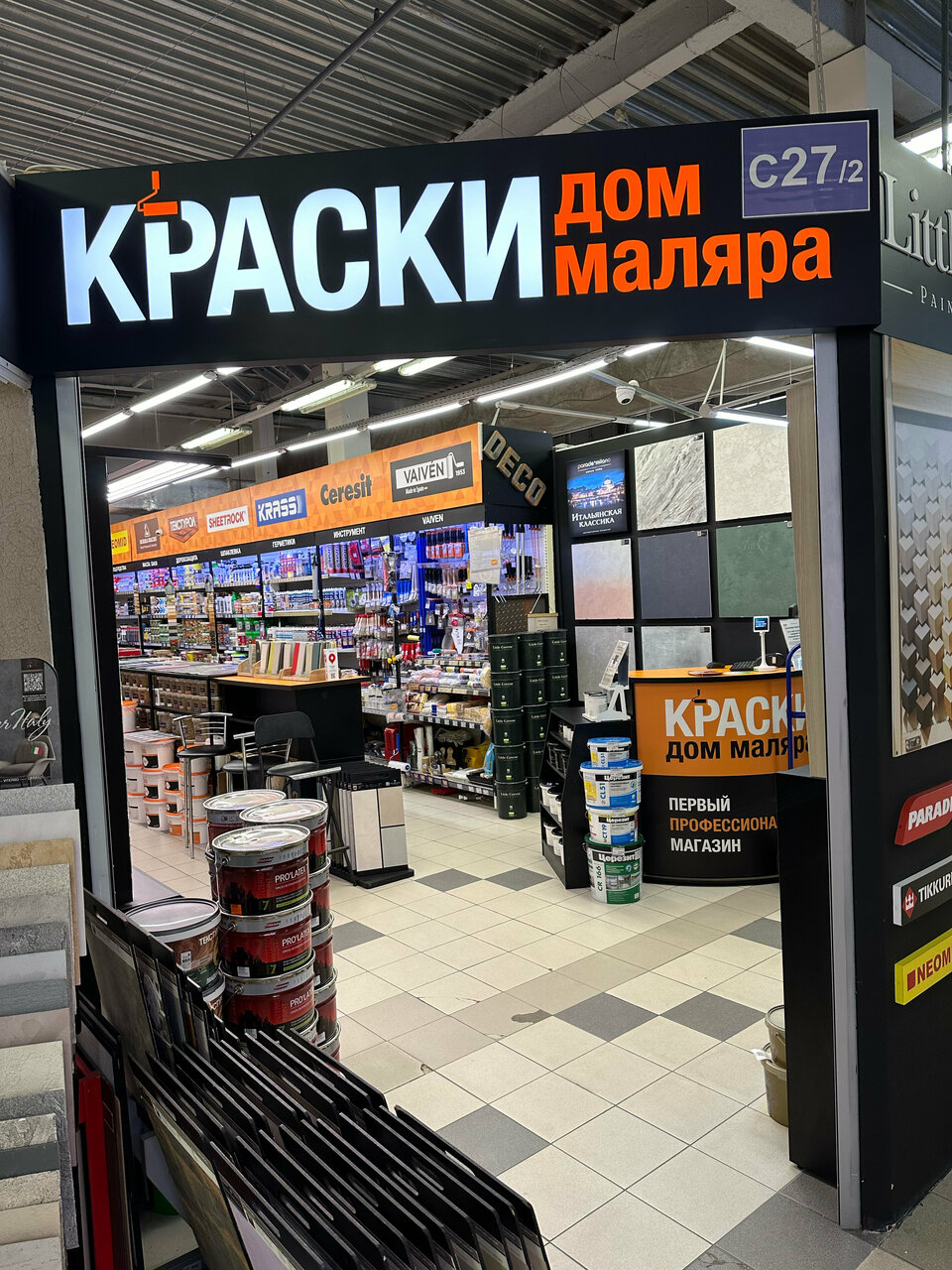 Хороший магазин с большим выбором краски и затирки. Цены вполне адекватные. Продавцы очень компетентные.