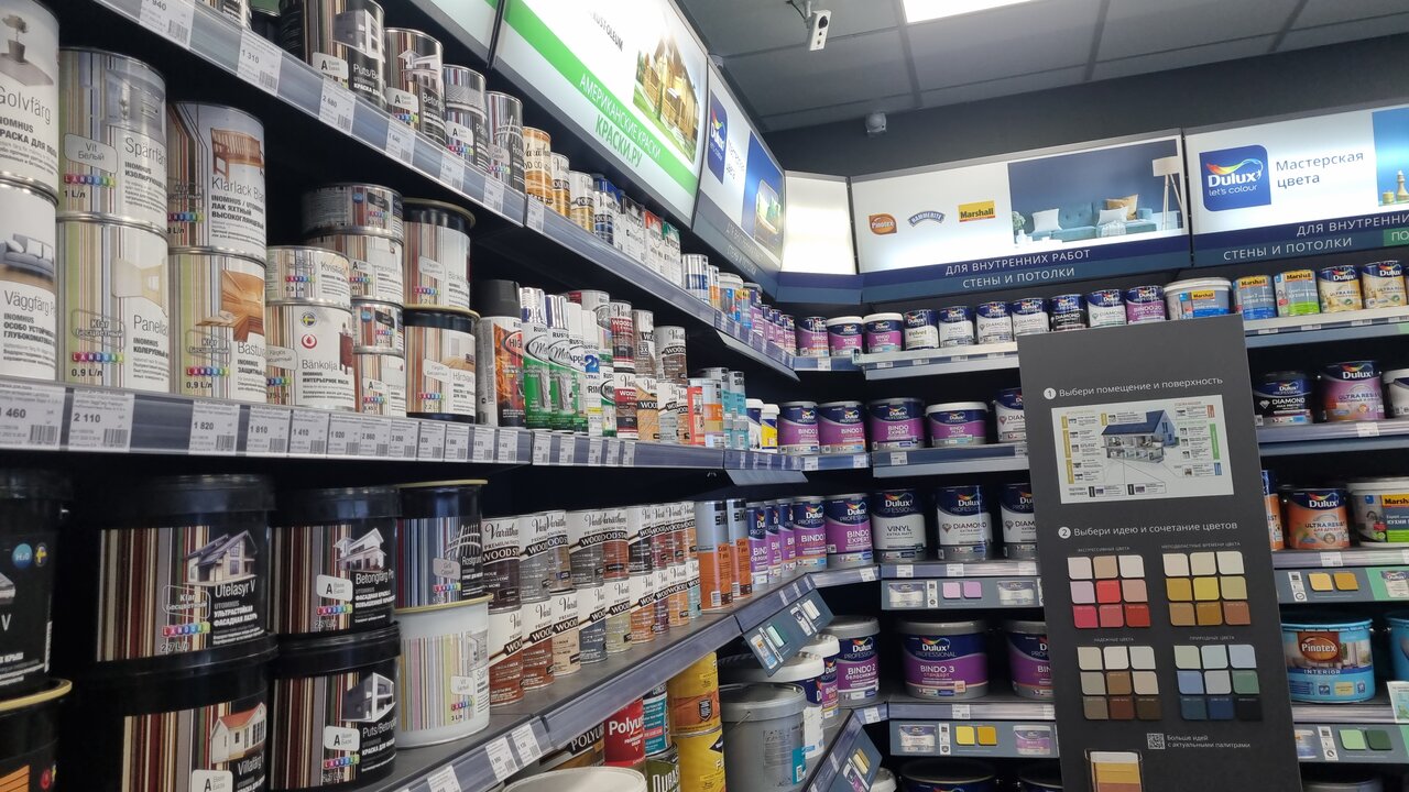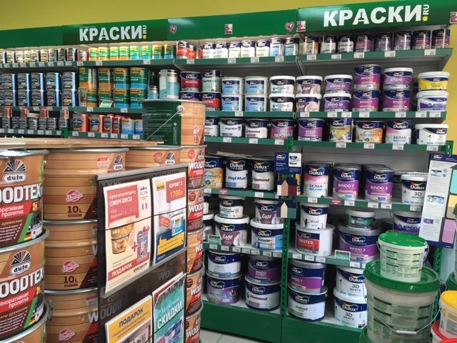 Большой выбор краски,открывается магазин вовремя.Можно расплатиться картой.