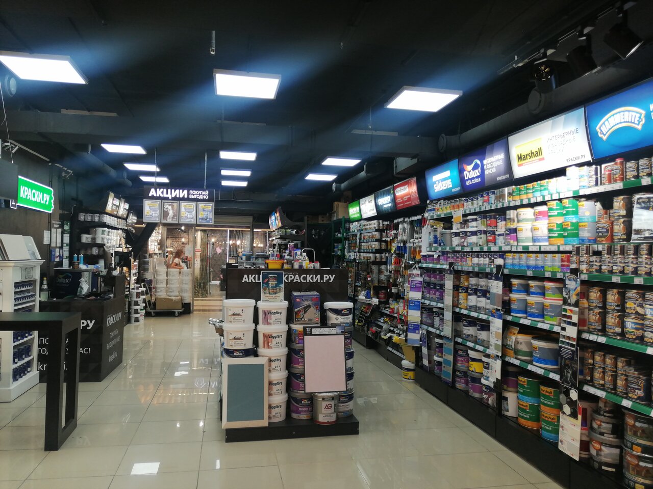 Отличное место, если вы решили проделать реновацию дома. Пришёл туда абсолютно не понимая, как мне покрасить дома стену, но продавец все рассказал, помог подобрать краску, смешал оттенок для меня и я радостный пошёл заниматься покраской)