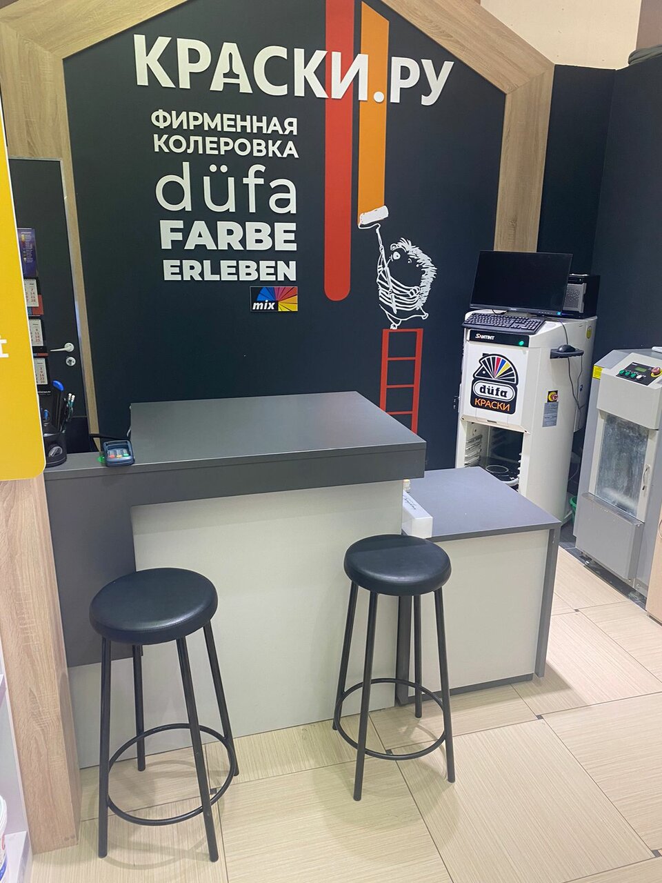 Помогли подобрать цвет колеровки, дали неплохую скидку, помогли донести часть краски до такси. Само качество краски Dulux Diamond, конечно, не их заслуга, но колеровка получилась именно такая, как хотел.