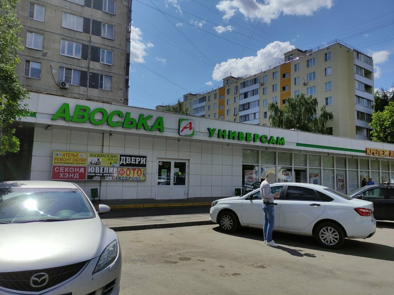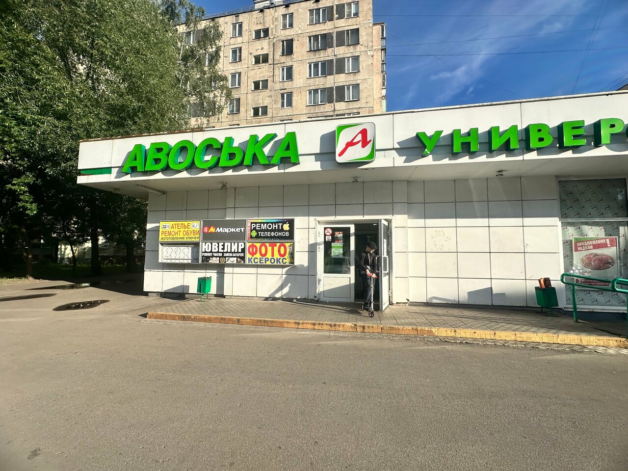 Ассортимент маленький, закрываются рано, продавец сидит в обувной мастерской.