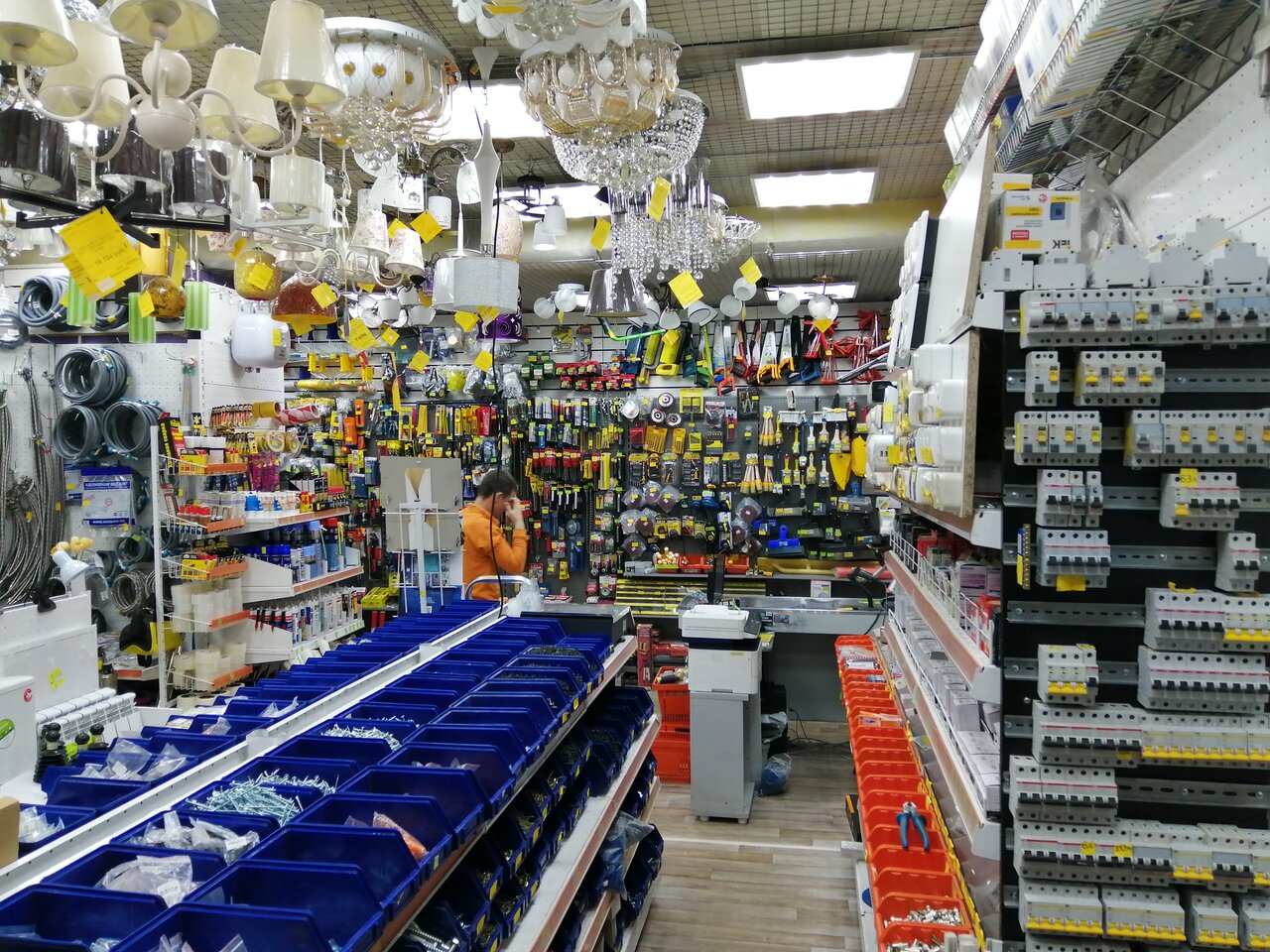 - Огромный выбор товаров; Хорошие консультации и советы; Доброжелательное и внимательное обслуживание; Умеренные цены (чуть выше рынков, но доступные); Большой ассортимент для ремонта и электроприборов
