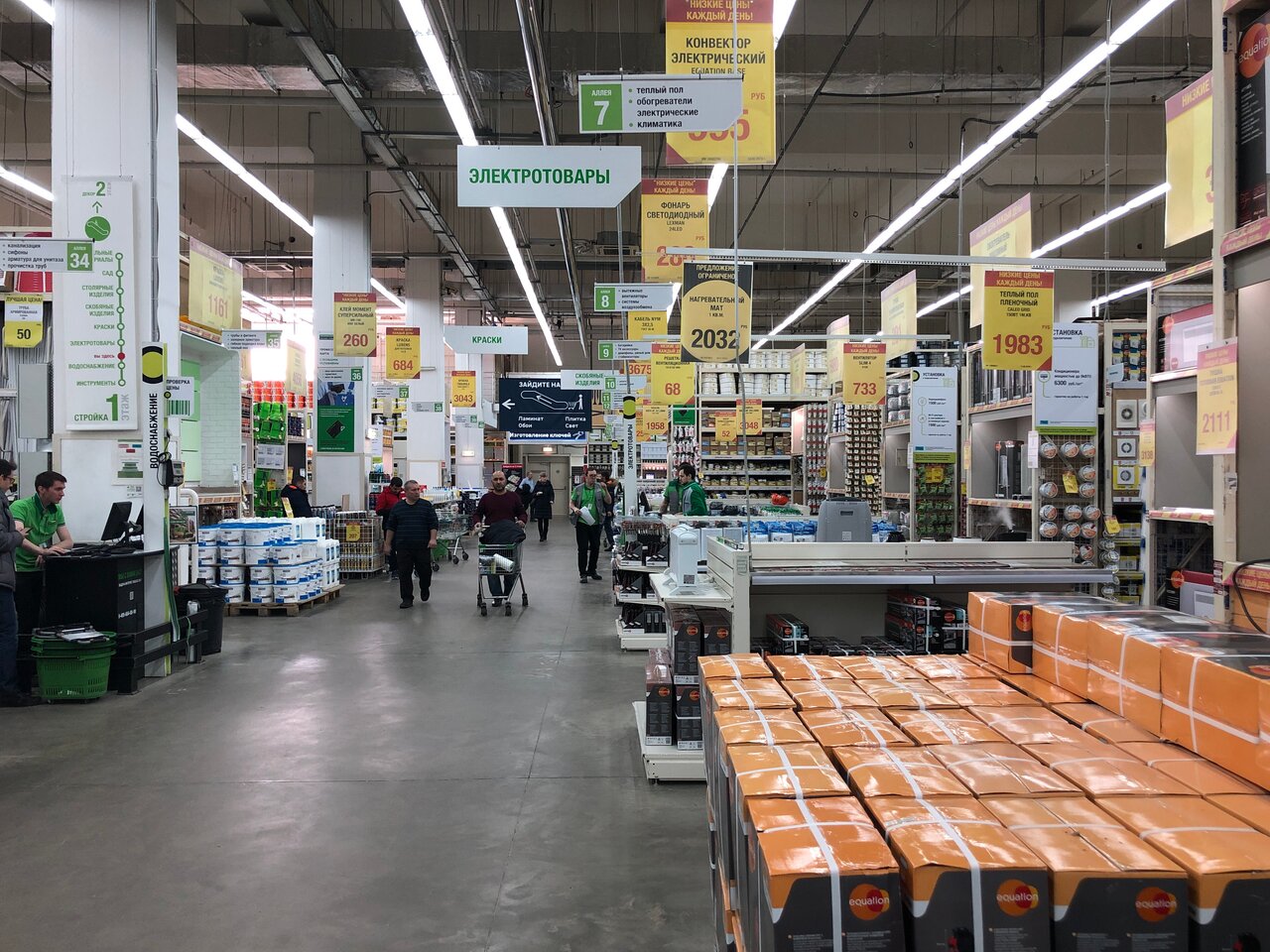 Очень нравится весь корпус, в котором находится Леруа. Здесь приобрели еврообои в квартиру, плинтуса, молдинги, светильники. И ещё хочется отметить бесплатную подземную парковку. Широчайший выбор товаров отличного качества. Очень удобны часы работы с 10 до 22, хотя хотелось бы до 23-00.