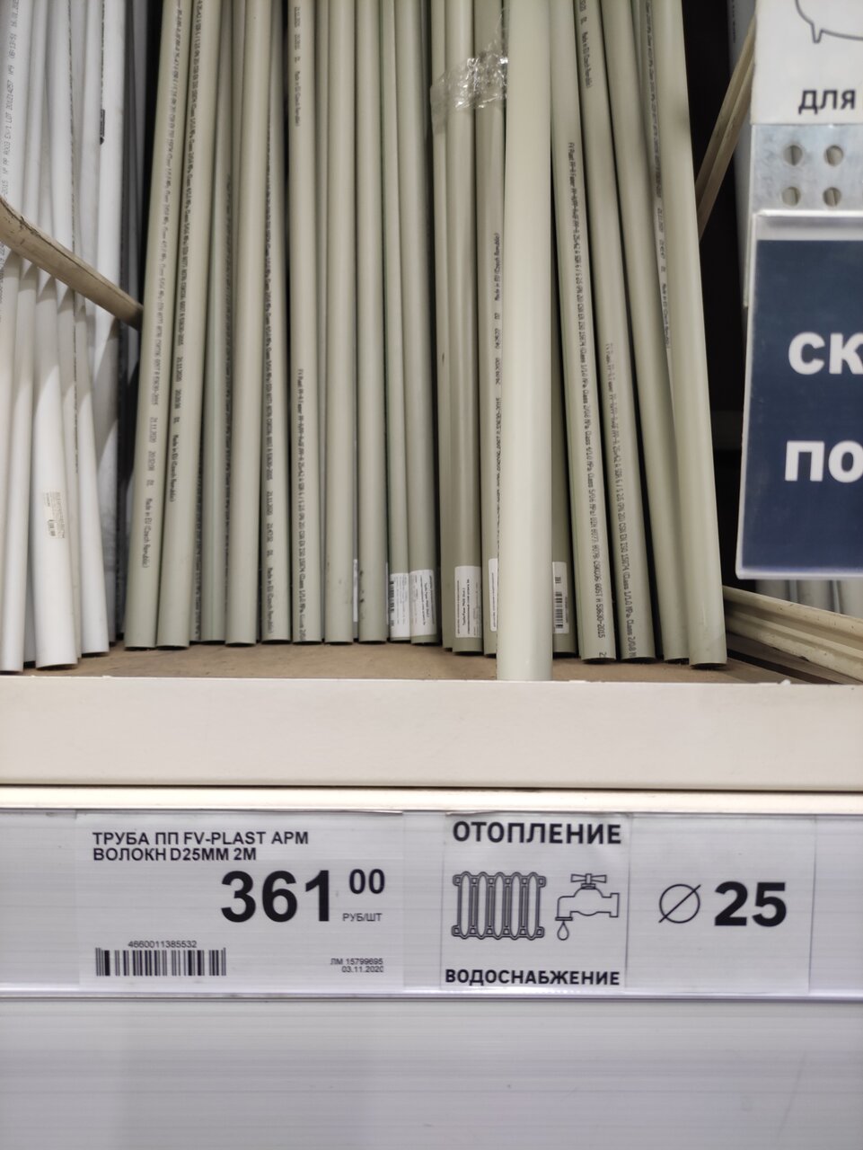 - Труба полипропиленовая Equation армированная стекловолокном 20x3.4 мм SDR 6 PN 25 2 м 116₽