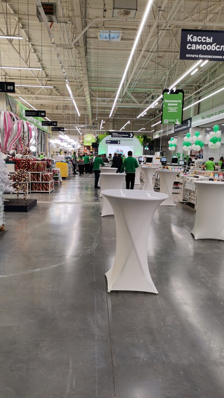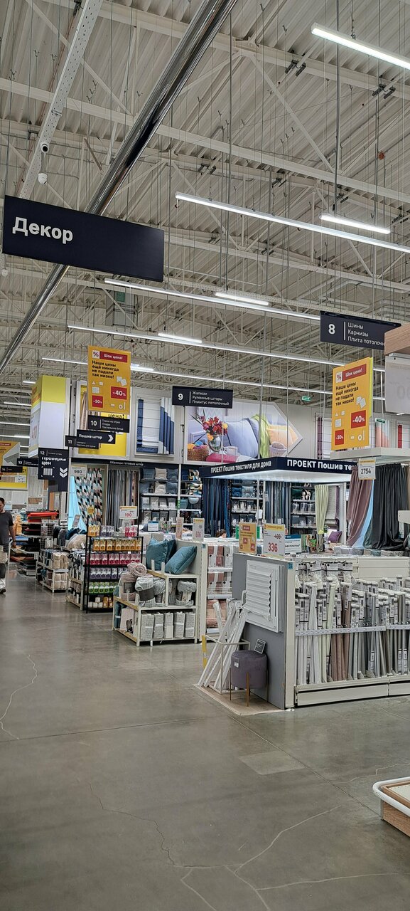 Все что нужно для городского или загородного жилища, на все случаи жизни. Большой выбор товаров, грамотные консультанты и работники, удобный расчёт на кассах. Отличный сервис, все на своих местах, грамотное расположение отделов. Удобный подъезд и есть места на стоянках. Мне нравится!