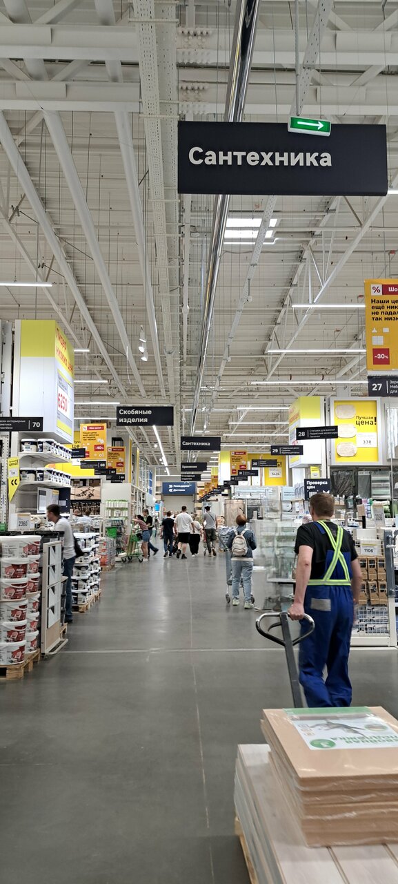 Отличный магазин, огромный выбор товаров, огромная территория и парковка, на машине без навигатора можно заблудиться в развязках, но со второго раза уже все понятно. Рядом здоровенный комплекс с другими магазинами, поезда в Леруа может перерасти в полноценный шопинг на весь день. Очередей почти нет, все чисто и аккуратно.