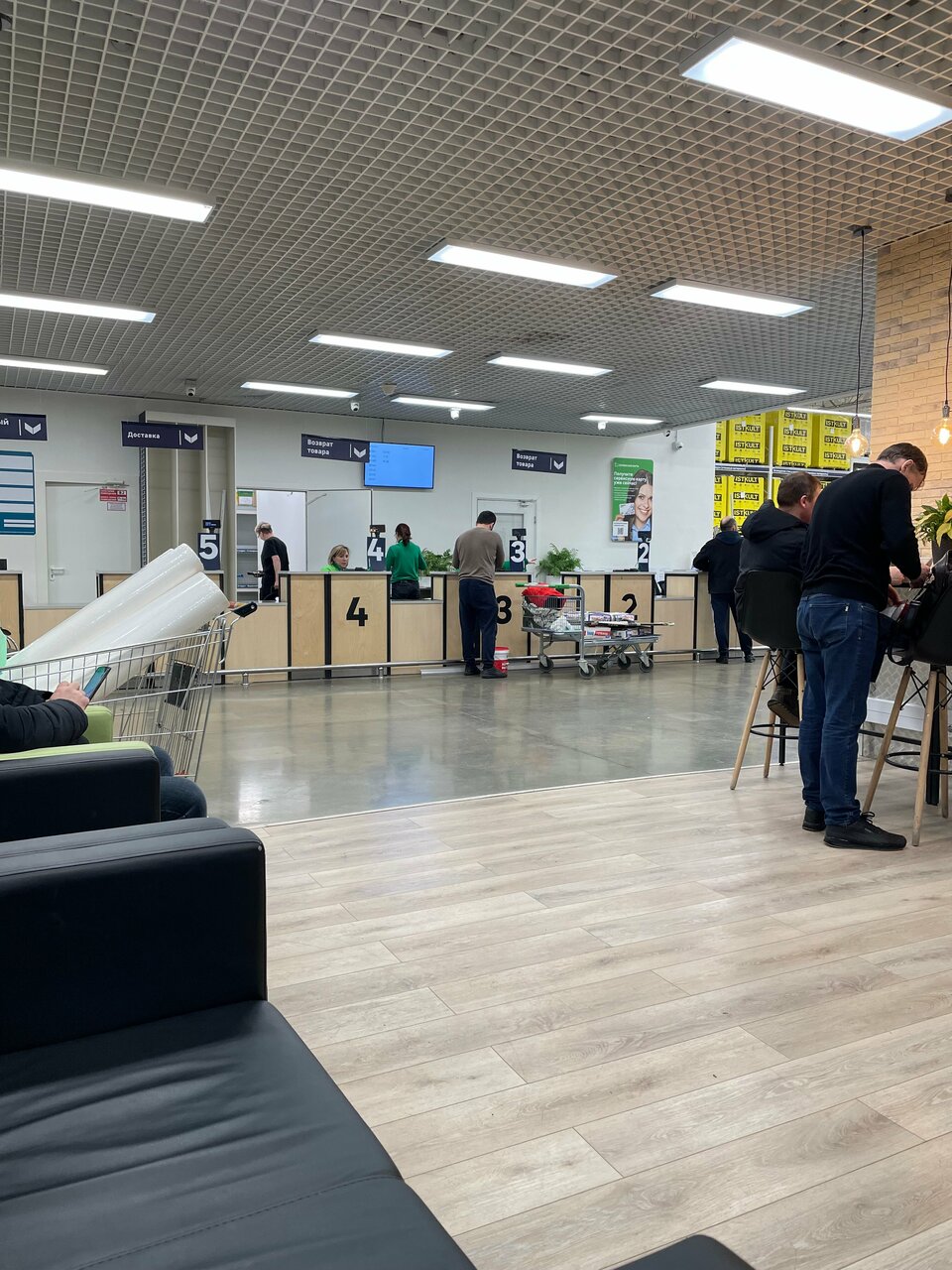 - Грамотные и отзывчивые консультанты (особенно в отделах сборки мебели и кухонь)