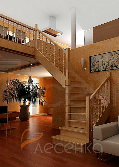 - Деревянная межэтажная лестница ЛЕС-215, Сосна 78054₽