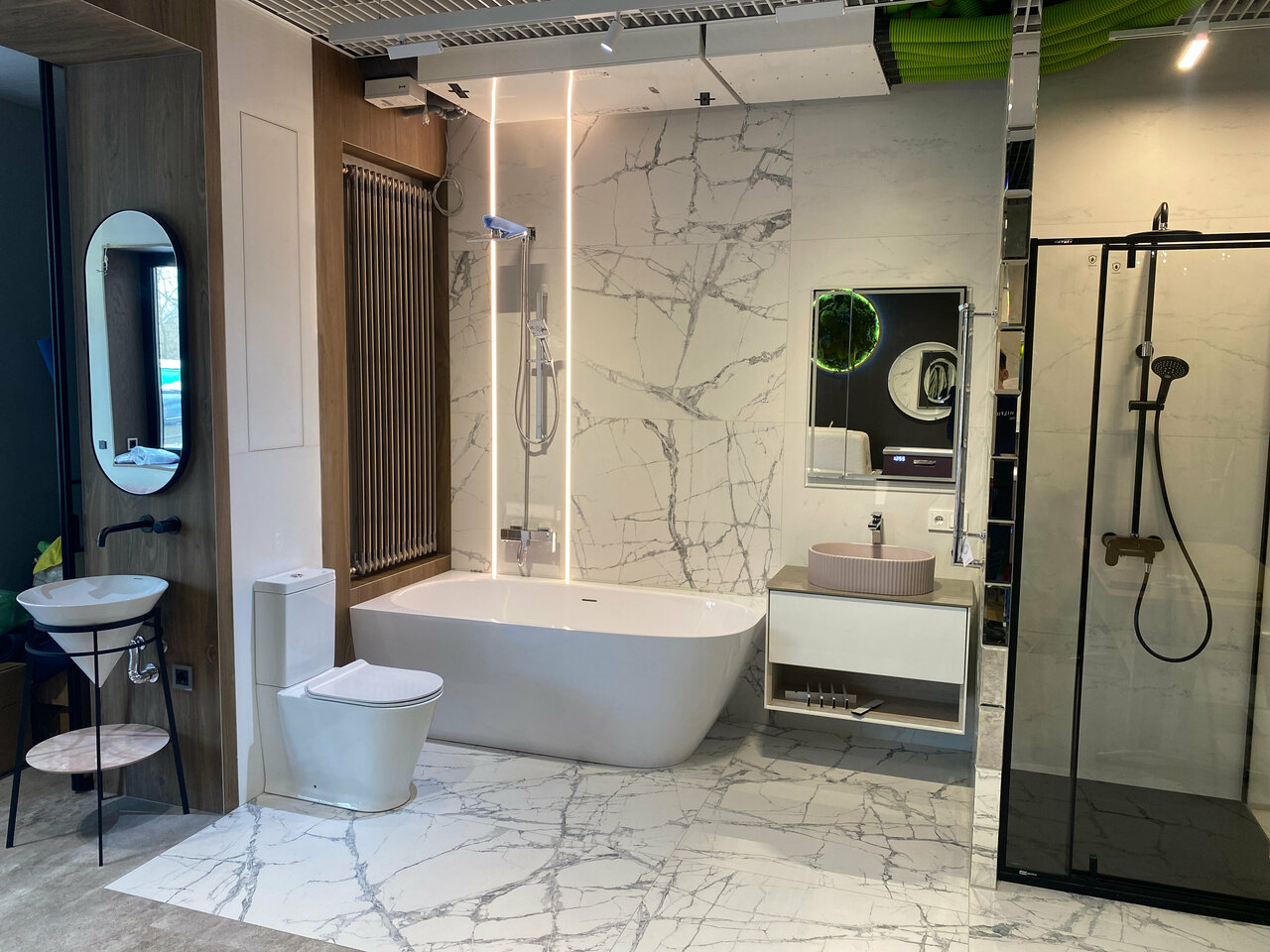 - Действующая ванна в шоуруме, но нельзя принять душ