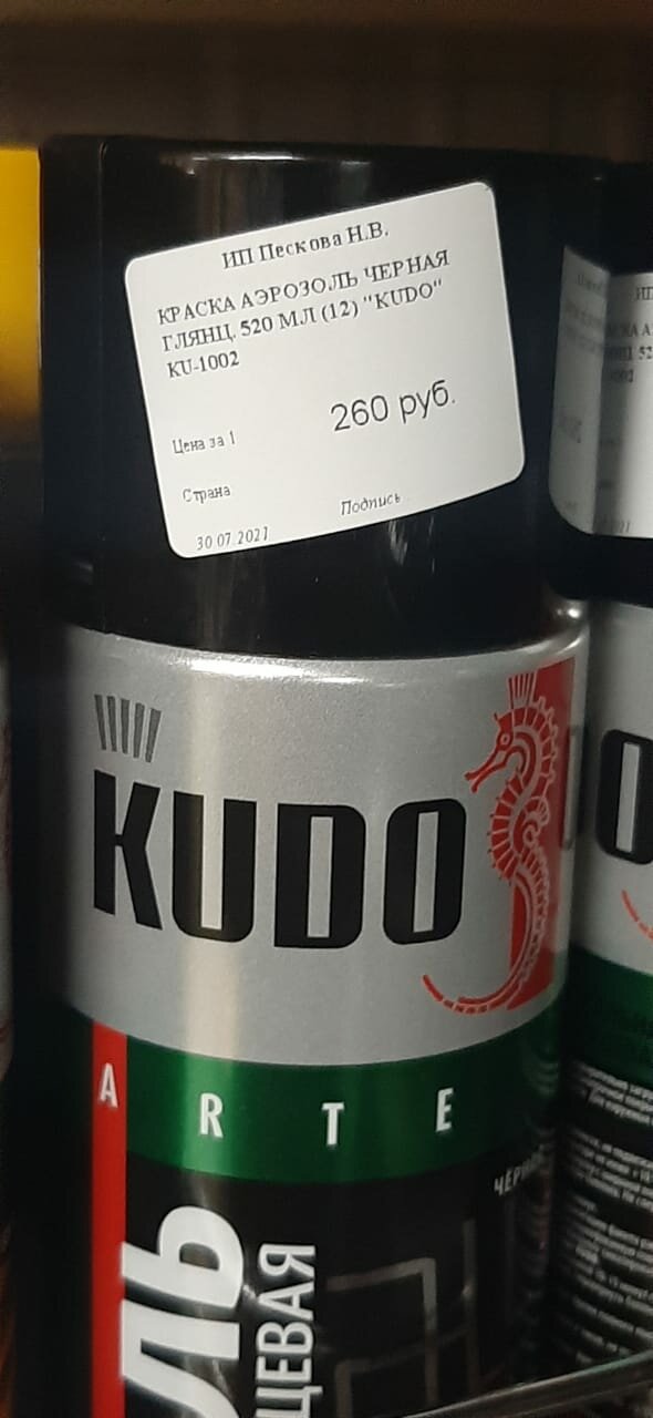 Краска аэрозоль черная глянцевая 520 мл 'KUDO' 520 мл