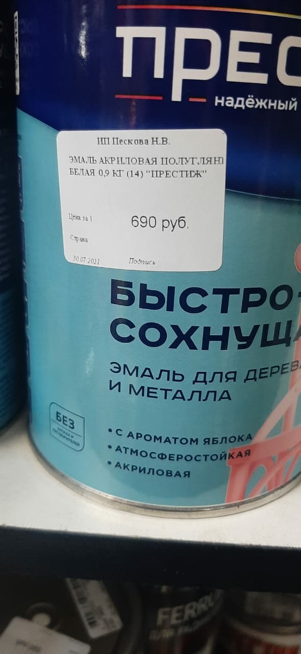 Эмаль акриловая полуглянцевая белая 0,9 кг