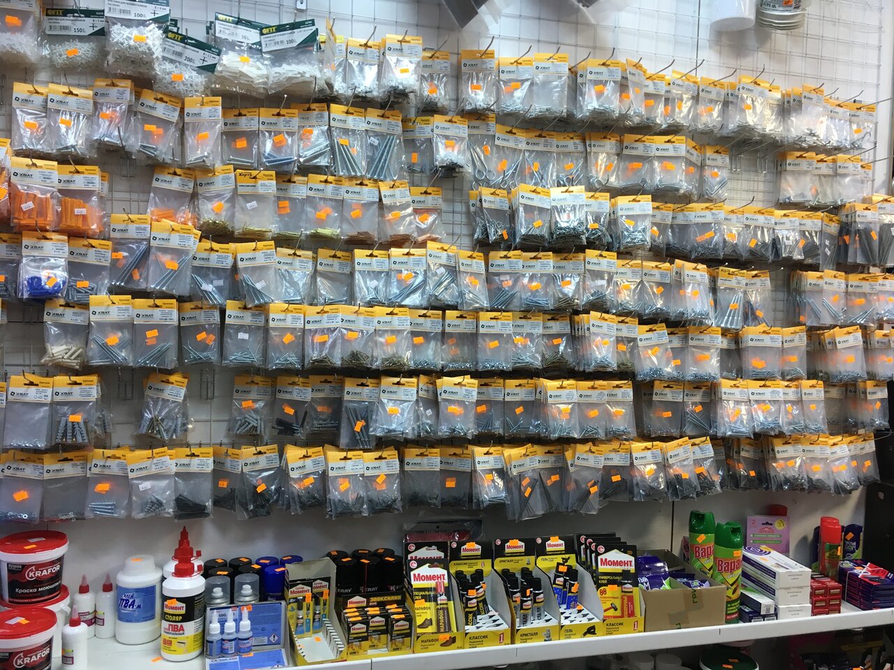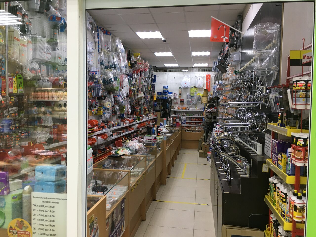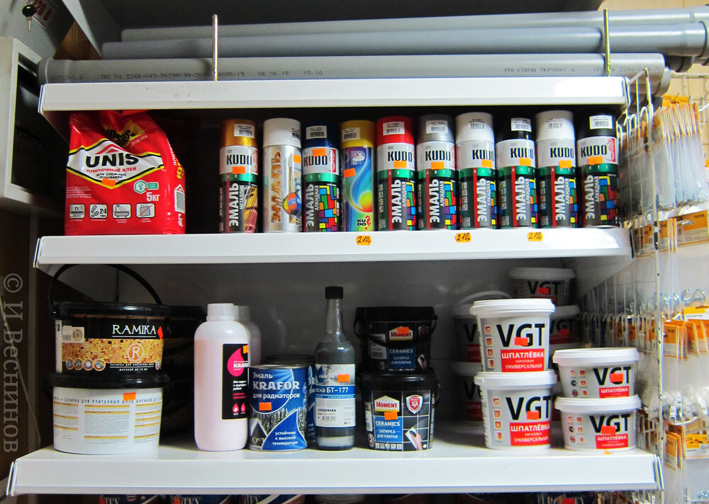 Хозяин старается держать ассортимент максимально разнообразным, но величина помещения не позволяет. В качестве аварийного варианта подойдёт. Если что серьёзное лучше ехать в Леруа Мерлен