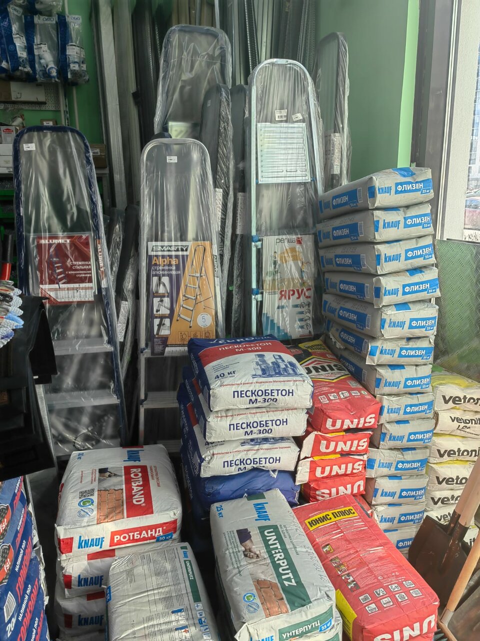 Магазин строительный ‘у дома’. В принципе, в чем мы нуждались по-мелочи ‘здесь и сейчас’ нашли — дюбеля, уголки и даже лопату в прошлую снежную зиму, дабы откопать свое средство передвижения. Естественно, не факт, что вы найдёте там всё что нужно для ремонта, но ходовые мелкие товары там имеются