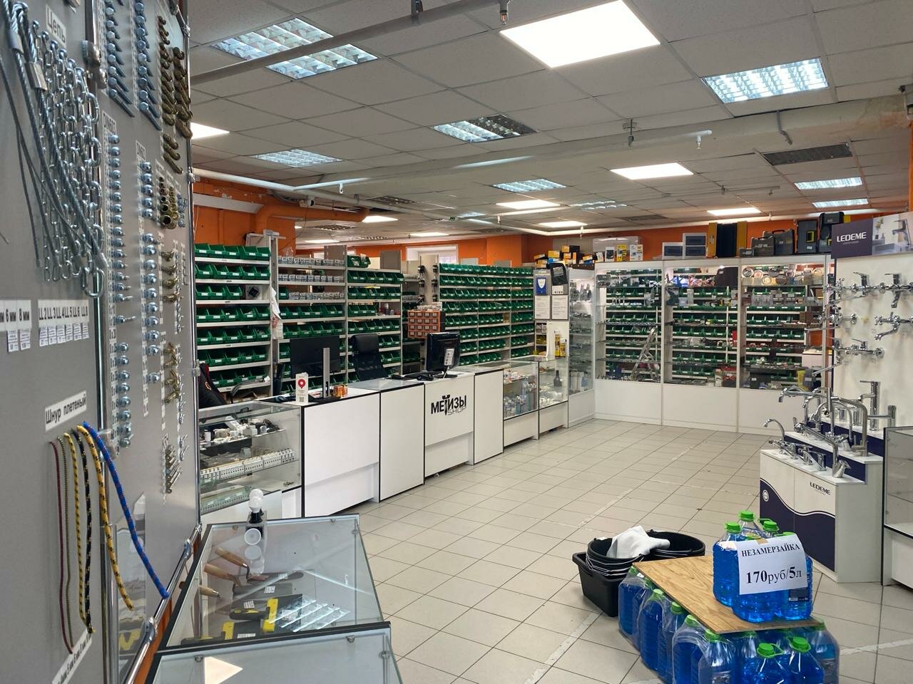 - Широкий ассортимент (крепеж, сантехника, электротовары, велозапчасти и др.)