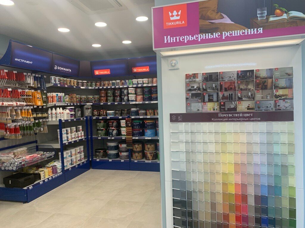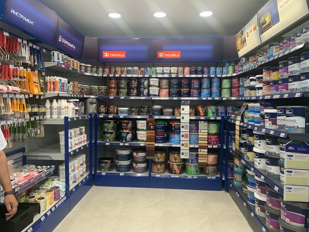 Магазин небольшой, но все есть. Купил обои и краску. Консультанты оперативно все подготовили и сделали доставку. Понравилось что спокойно подобрала цвет, мне показали выкрасы, все получилось, спасибо.