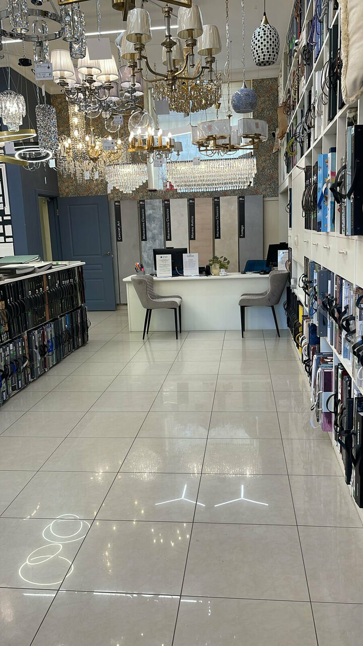 Магазин обоев, строительный магазин, светильники