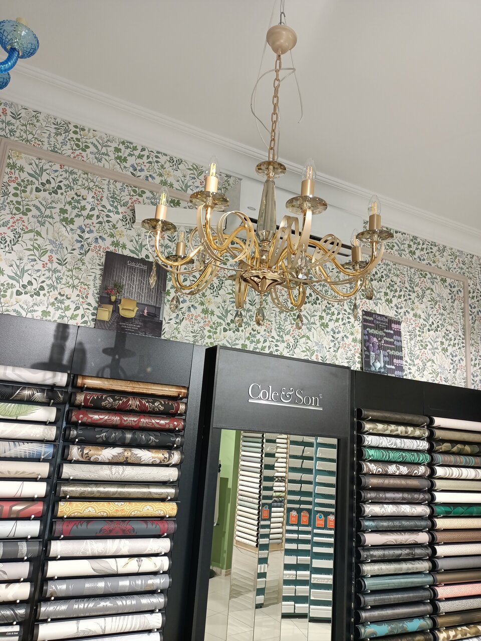 Большой выбор обоев, в том же помещении можно посмотреть светильники. Цены такие же, как в интернете. Можно оформить доставку или забрать самовывозом