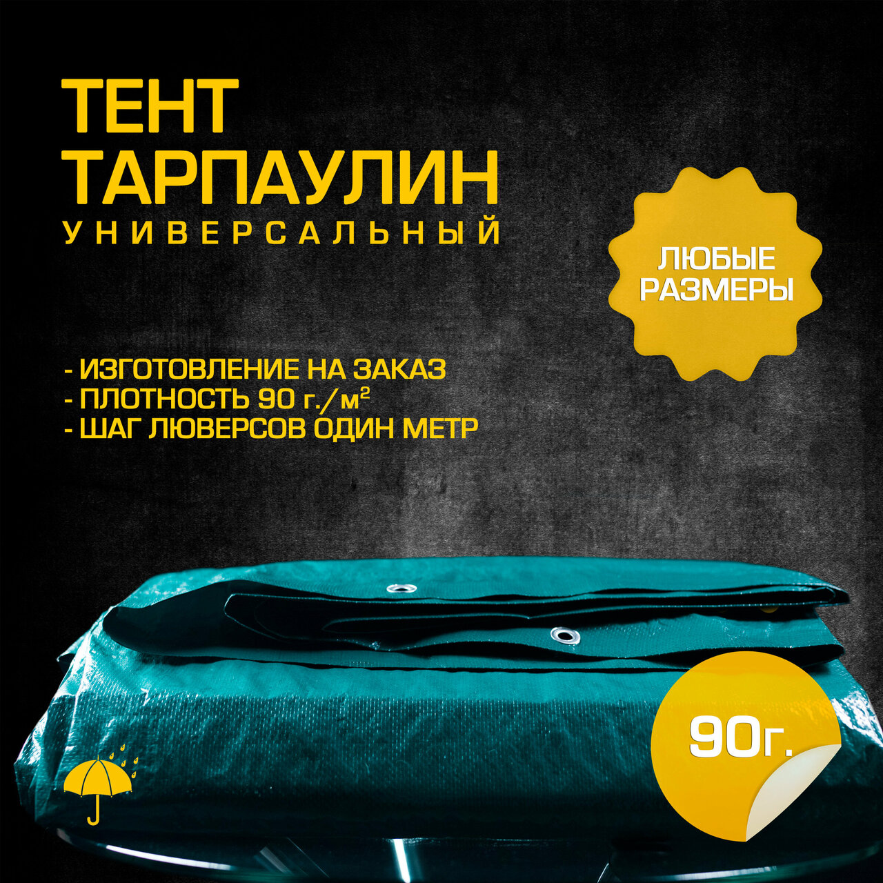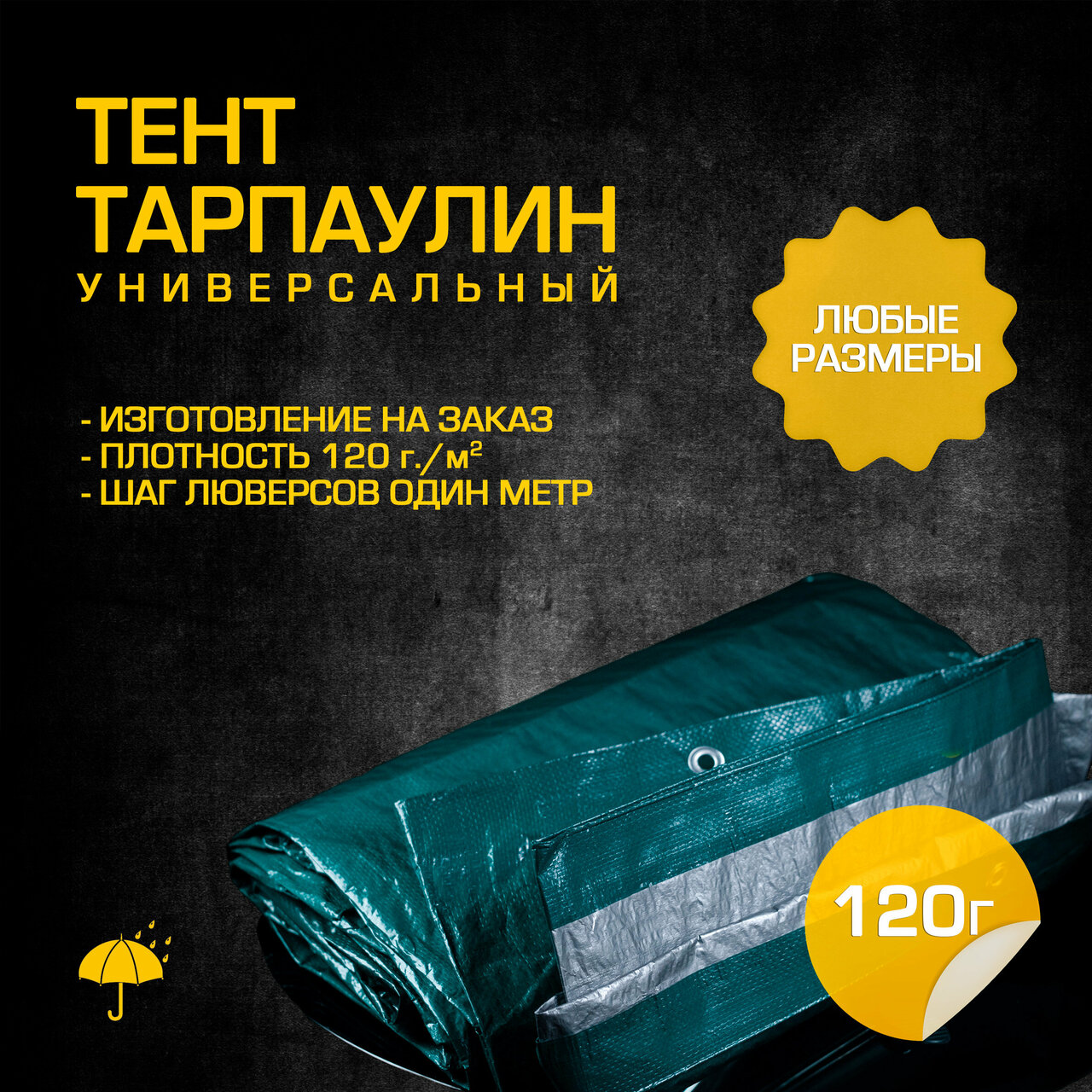 - Тент тарпаулин укрывной 120 гр/м2, размер 4x4м с люверсами 800₽