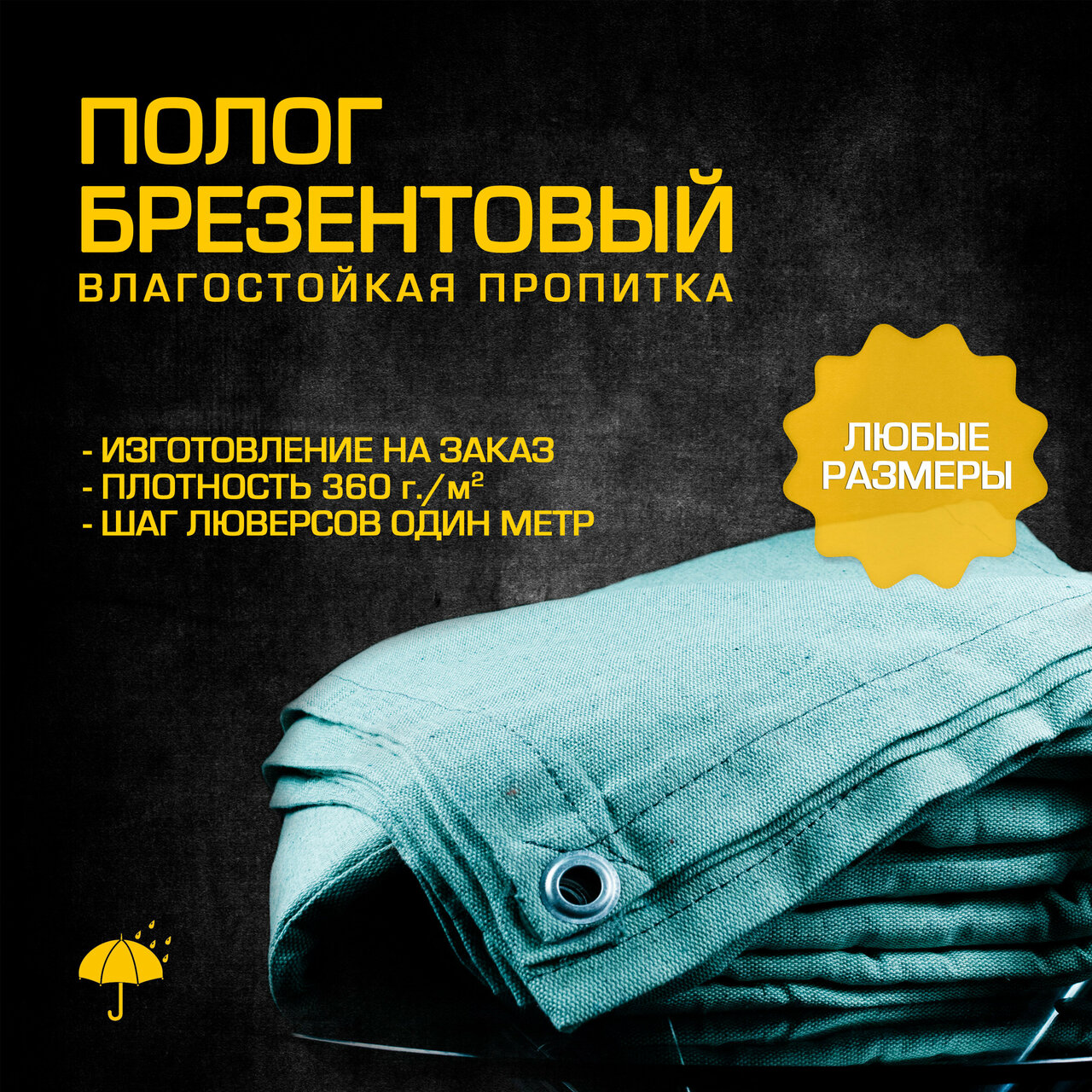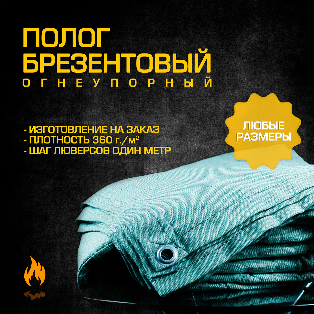 Брезентовый тент огнеупорный 450 гр/м2, размер 3 х 3 м