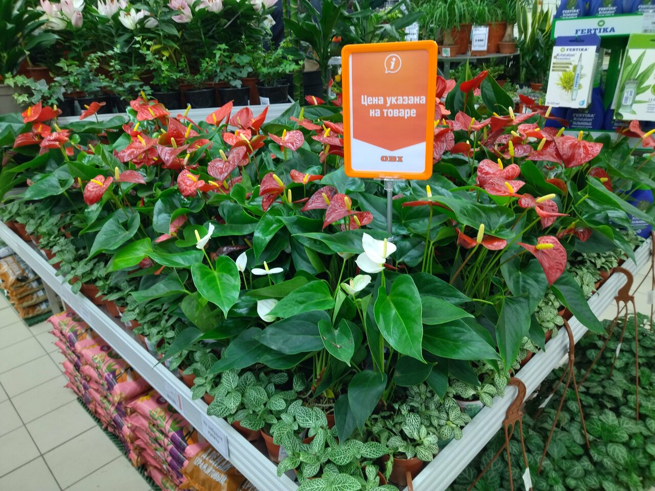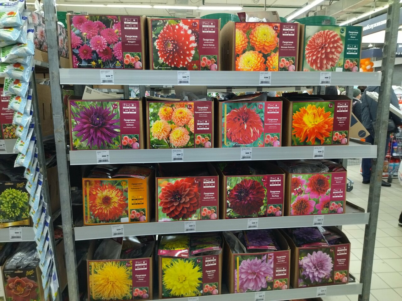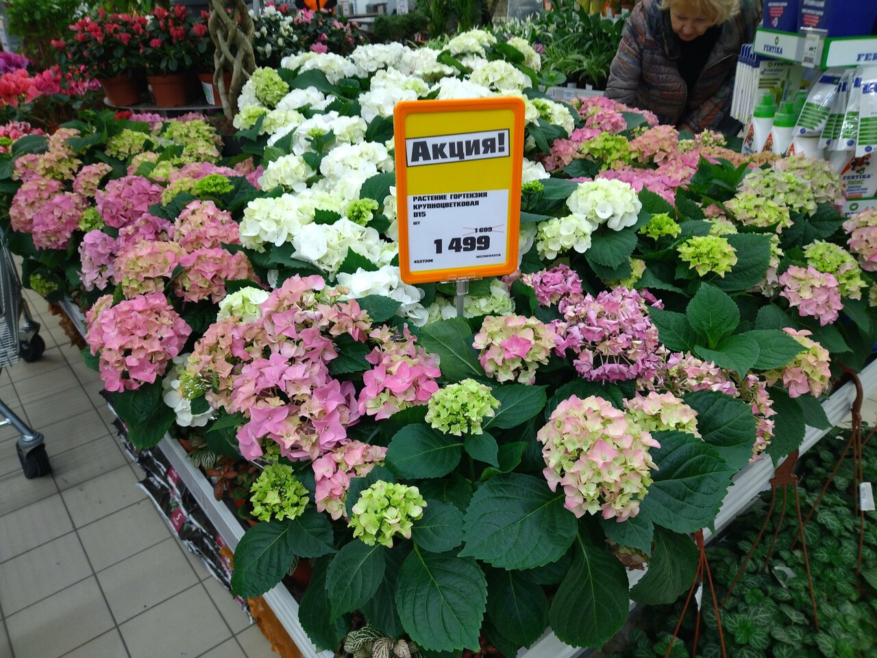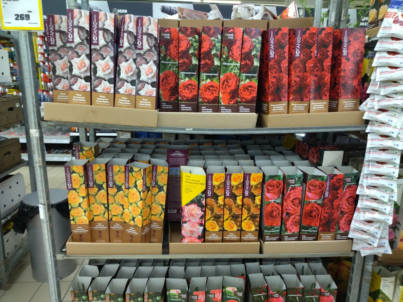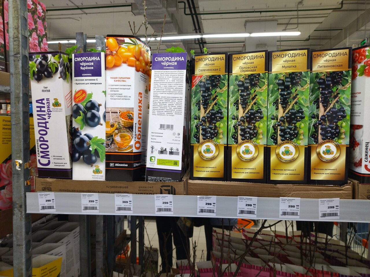 - Наличие садовых товаров (цветы, саженцы, инвентарь)