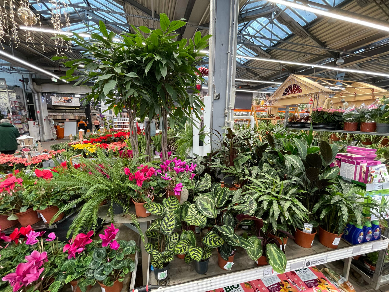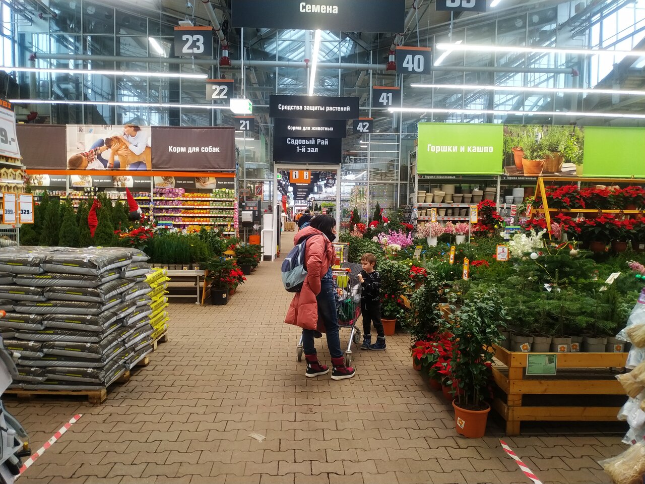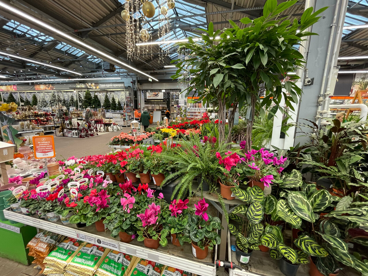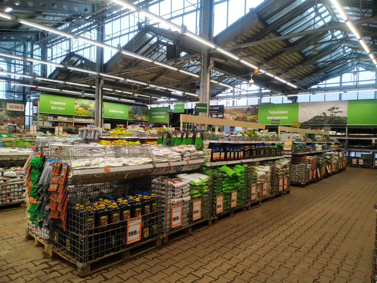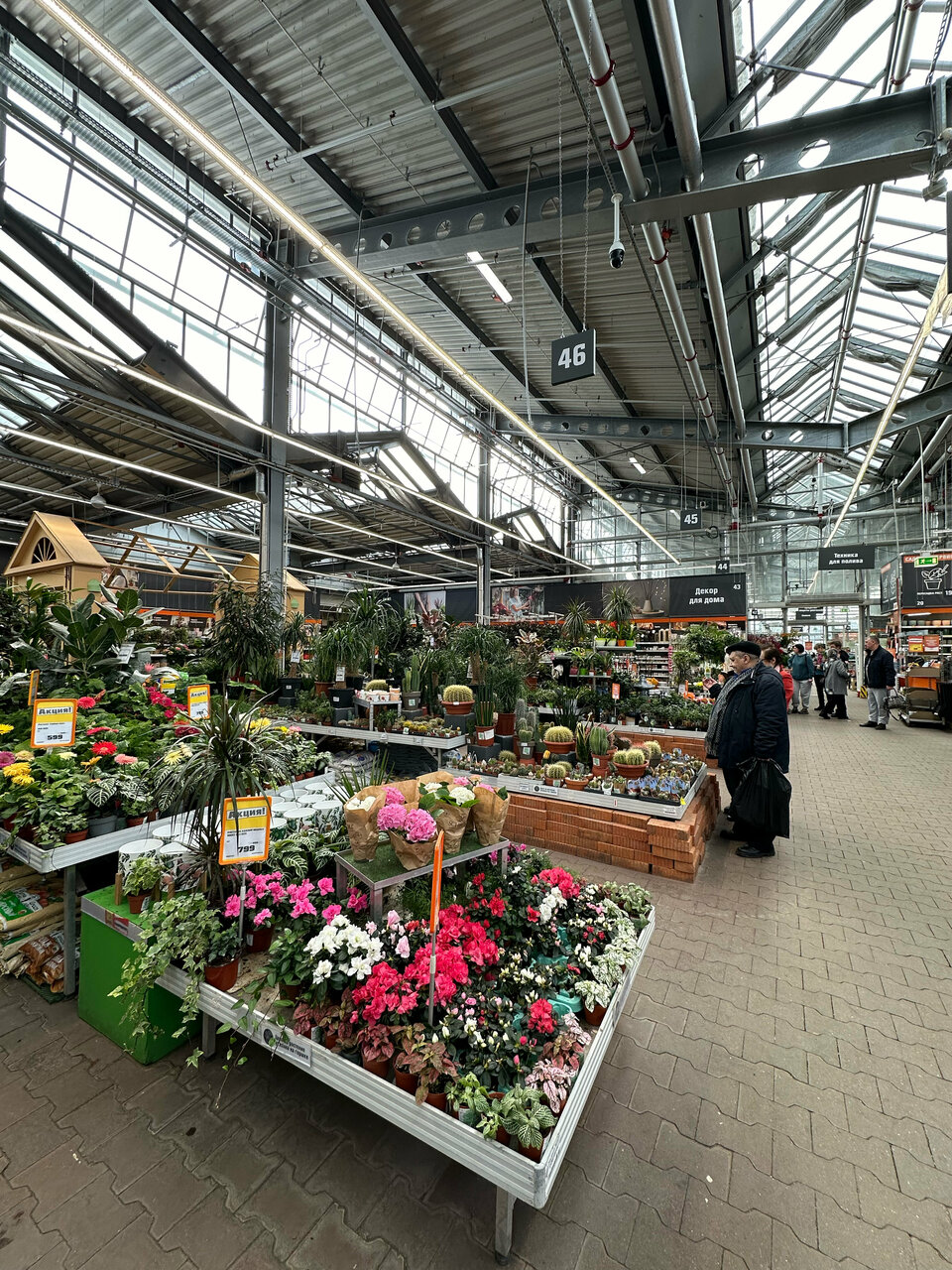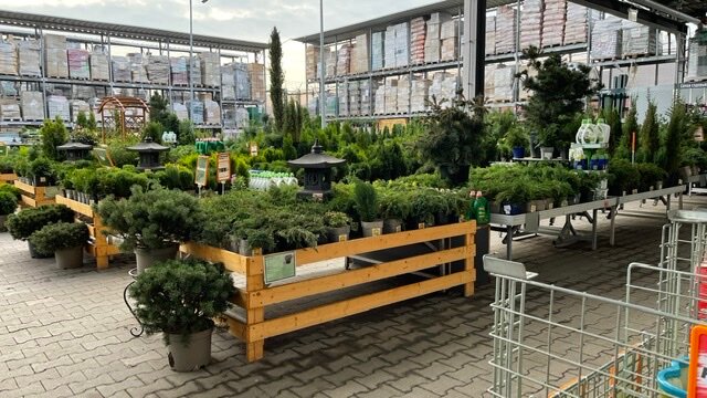 - Большой выбор товаров (краски, инструменты, плитка, садовая мебель, растения)
