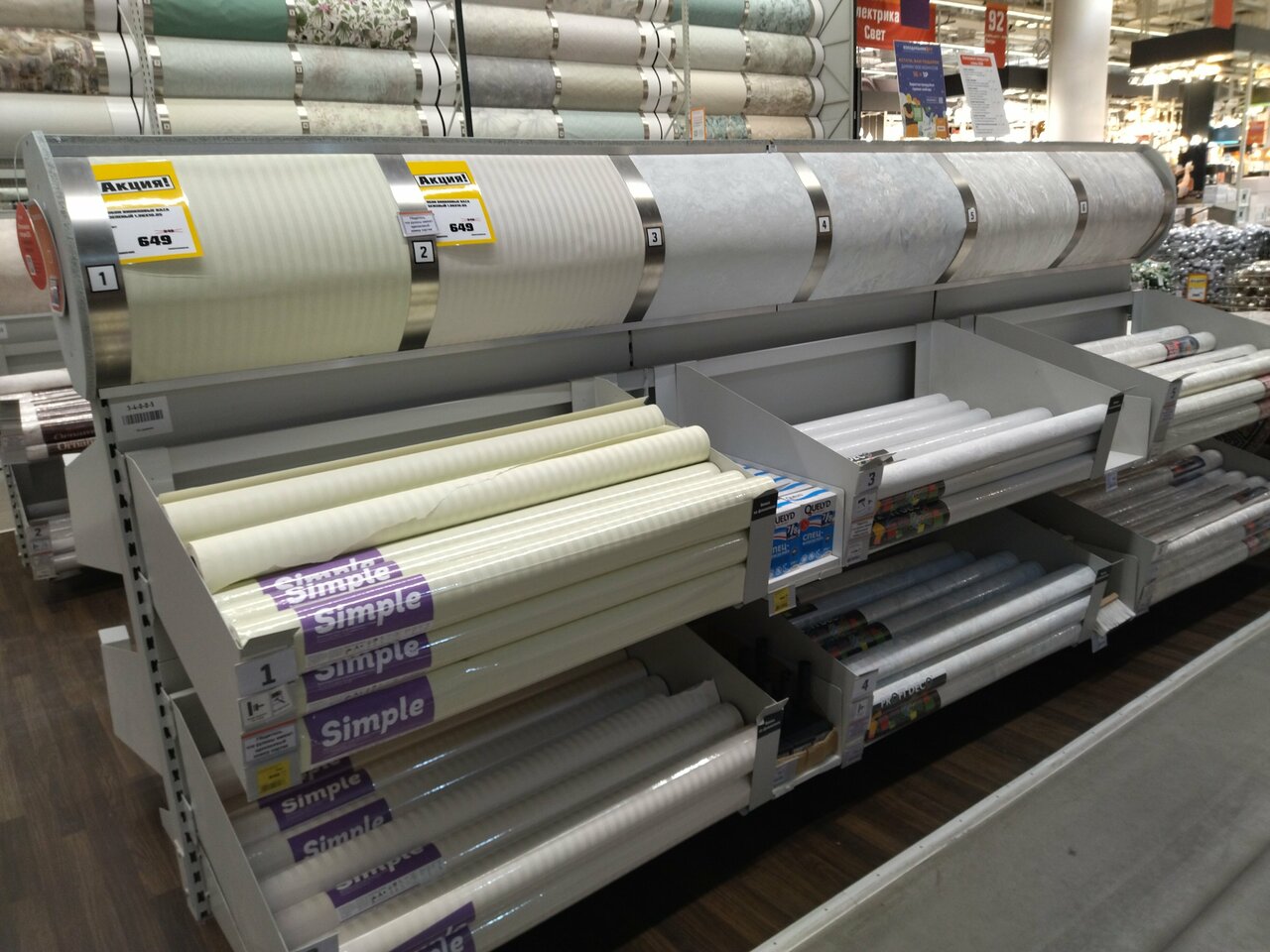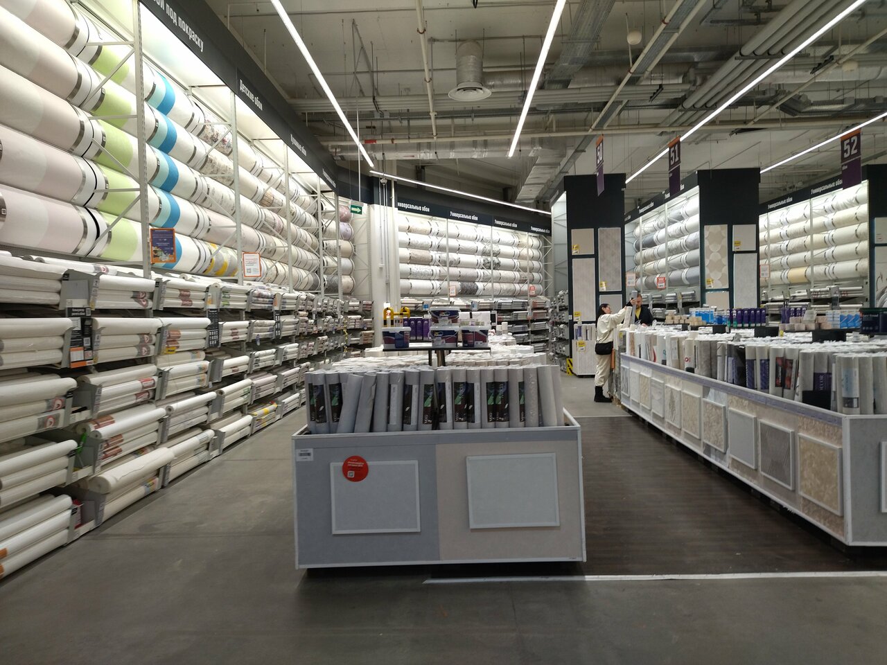 Товар расставлен неудачно. Краска в одном месте, кисти и валики в другом. Всё надо искать. Не буду сравнивать с аналогичным магазином.