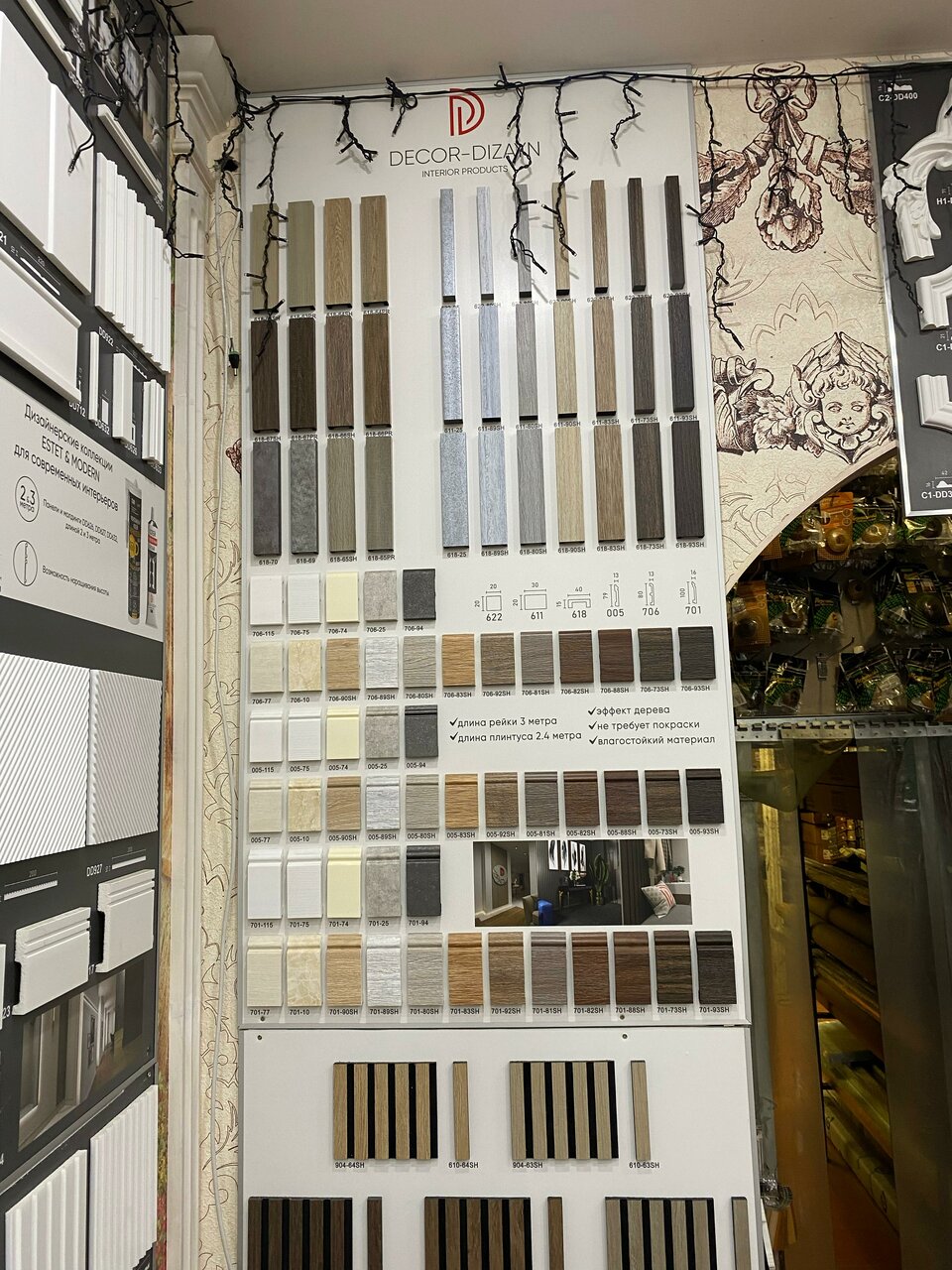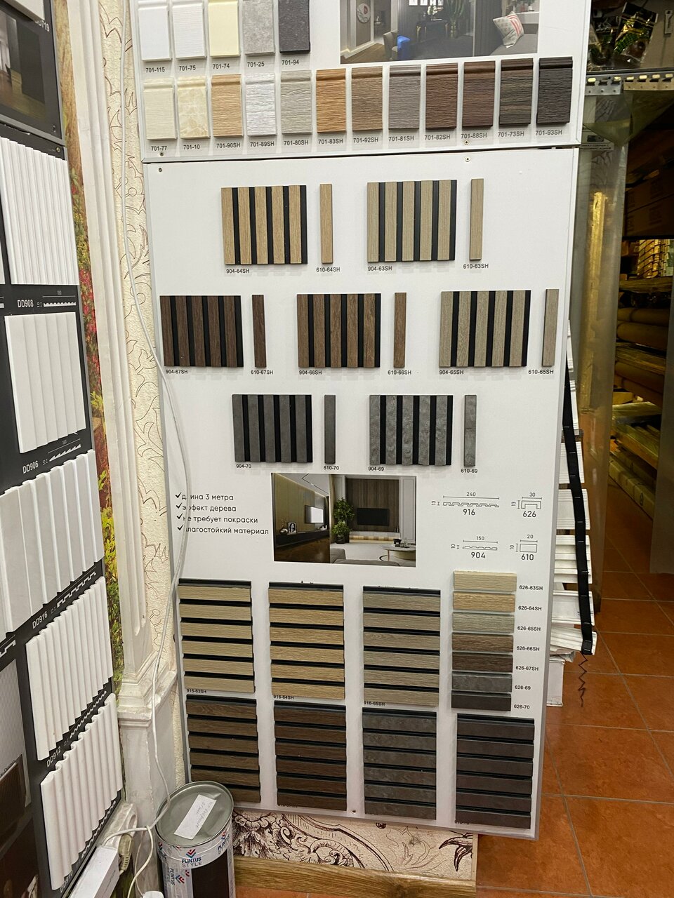 Огромный выбор плинтусов , разнообразие цветов, очень вежливые продавцы , помогли подобрать по цвету и размеру , очень терпеливо отнеслись еще и посоветовали по цене и качеству, очень довольна 10/10 спасибо
