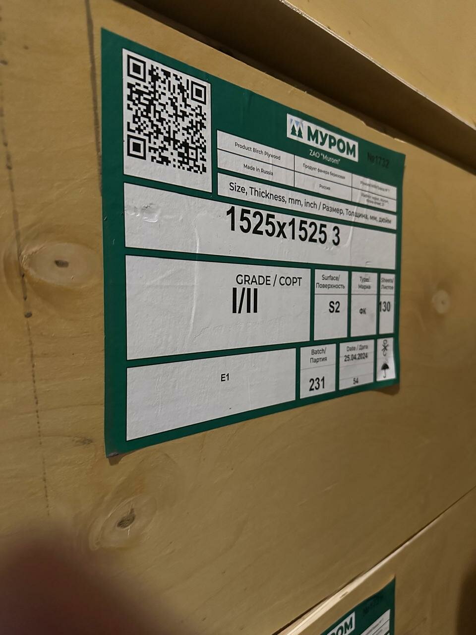 - Фанера ФК березовая 18 мм 1525х1525 сорт 2/4 Ш2 1780₽