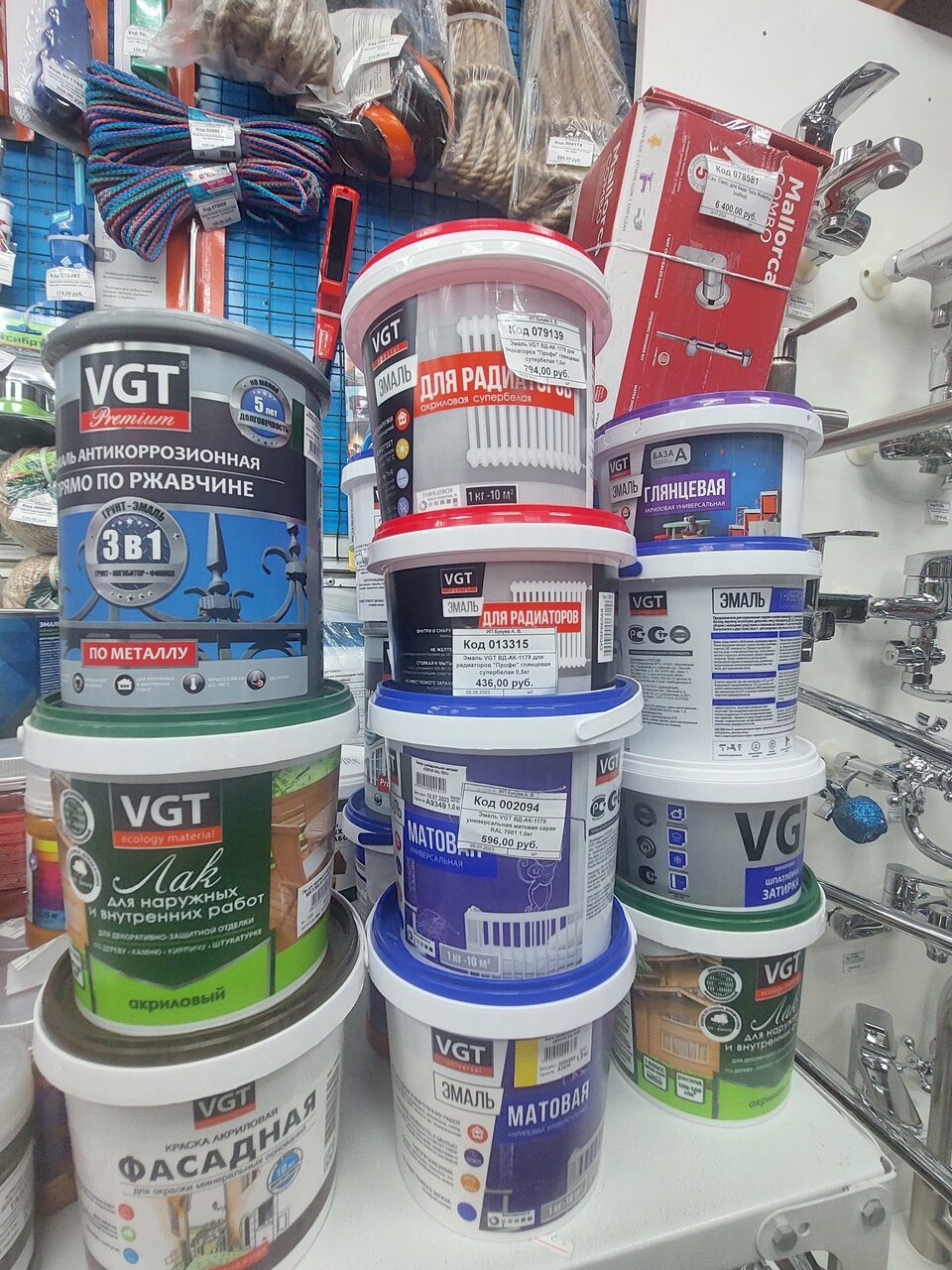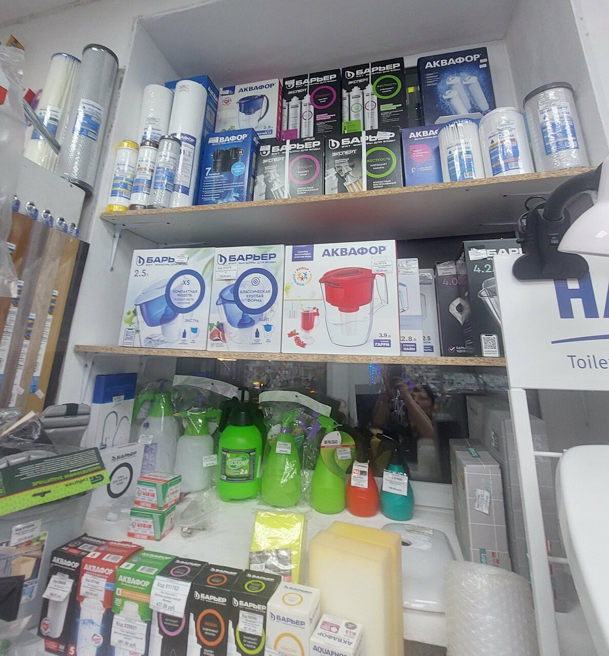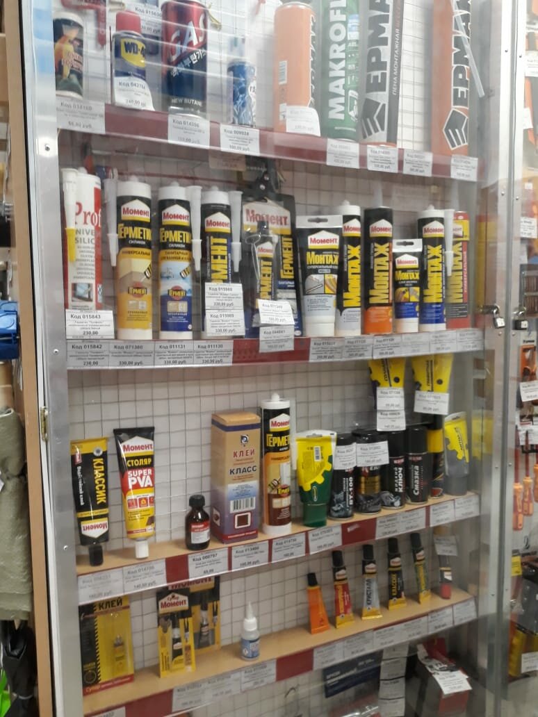 В маленьком помещении достаточно большой ассортимент товаров как хозяйственных, так и для ремонта( например сантехнические фитинги и для воды и для канализации, переходники; крепеж; инструменты, электрика ). Несколько продавцов консультантов