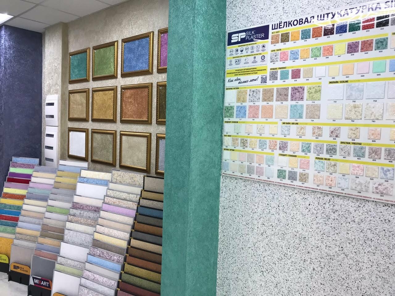 - Большой склад жидких обоев, возможность сразу купить на месте
