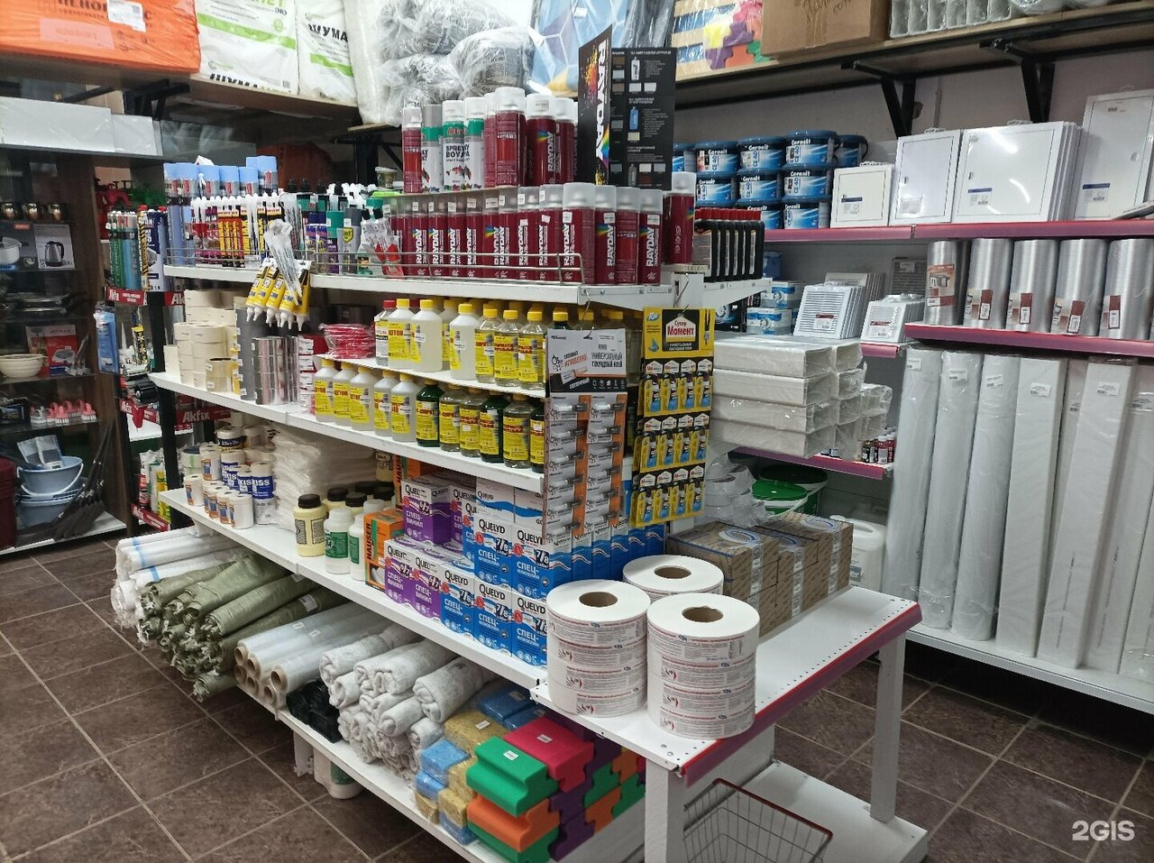 Спасение для внезапных штук для ремонта и быта. Да, дороже, да, не огромный ассортимент брендов, но по типам материалов всё есть. Ещё есть аренда техники.