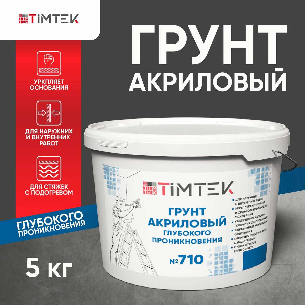 Грунт акриловый универсальный, со-3%, 5кг TIMTEK №705