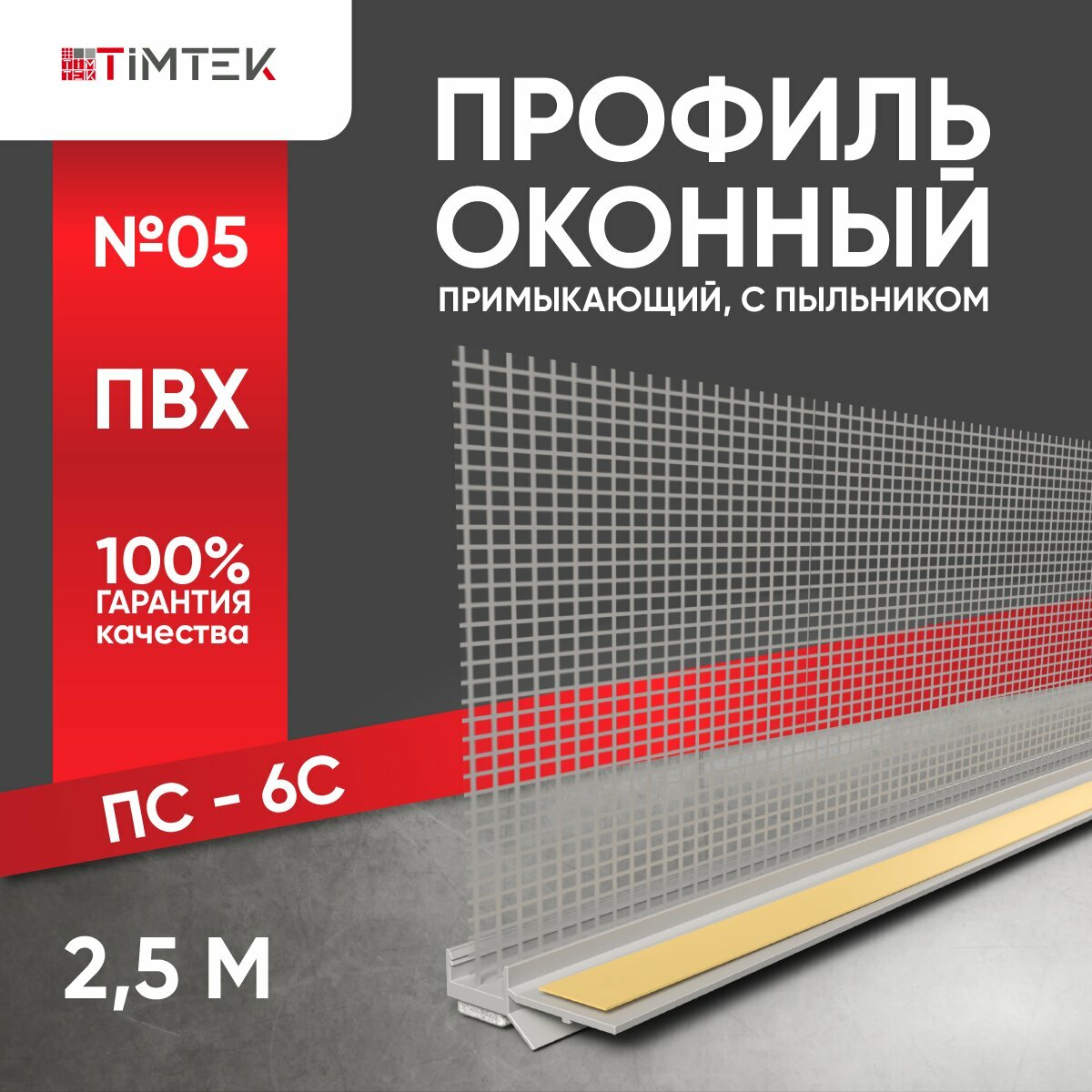 Профиль примыкающий оконный с сеткой ПС-6С с пыльником 2,4м TIMTEK 05