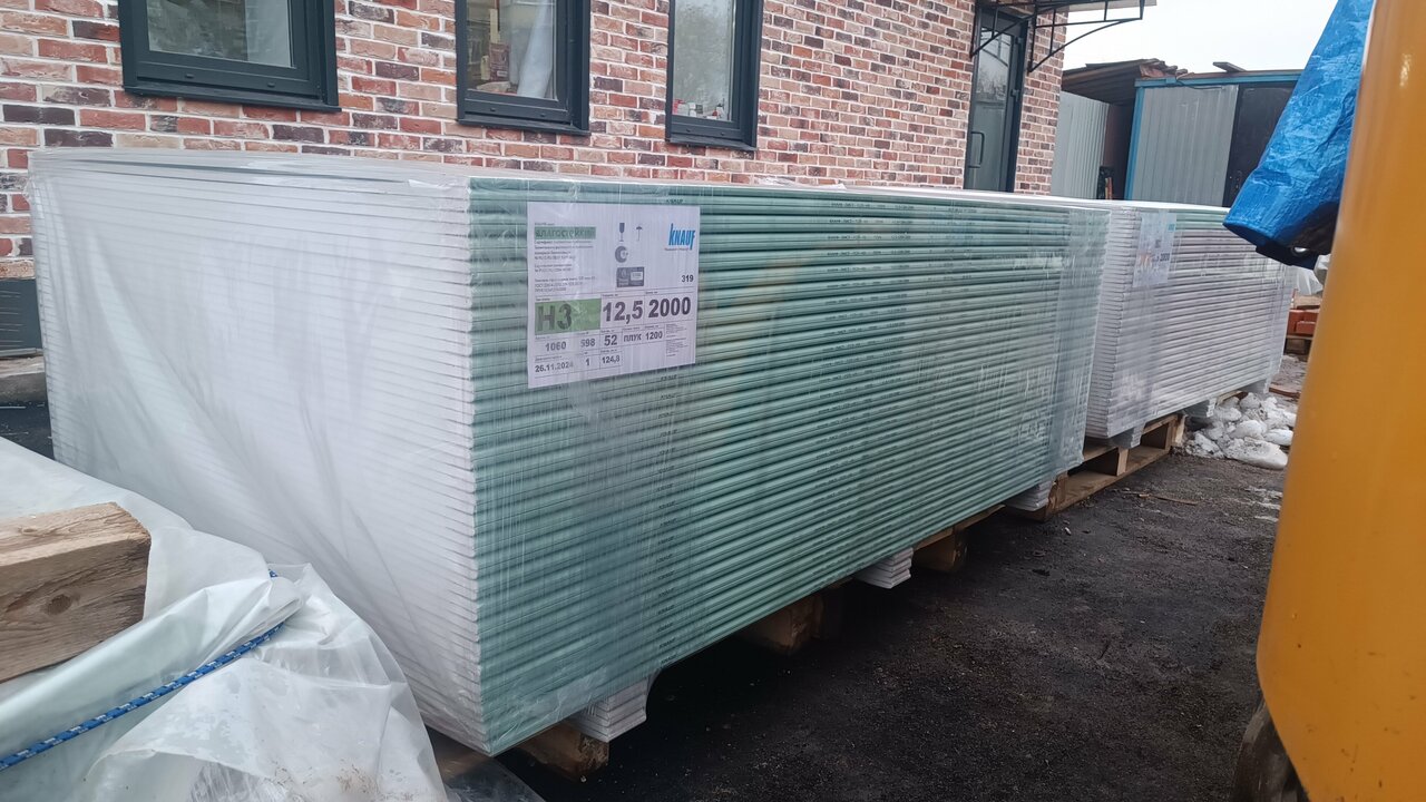 Гипсокартон КНАУФ (KNAUF) влагостойкий (ГКЛВ ГСП-Н2) 2000х1200х12,5 мм