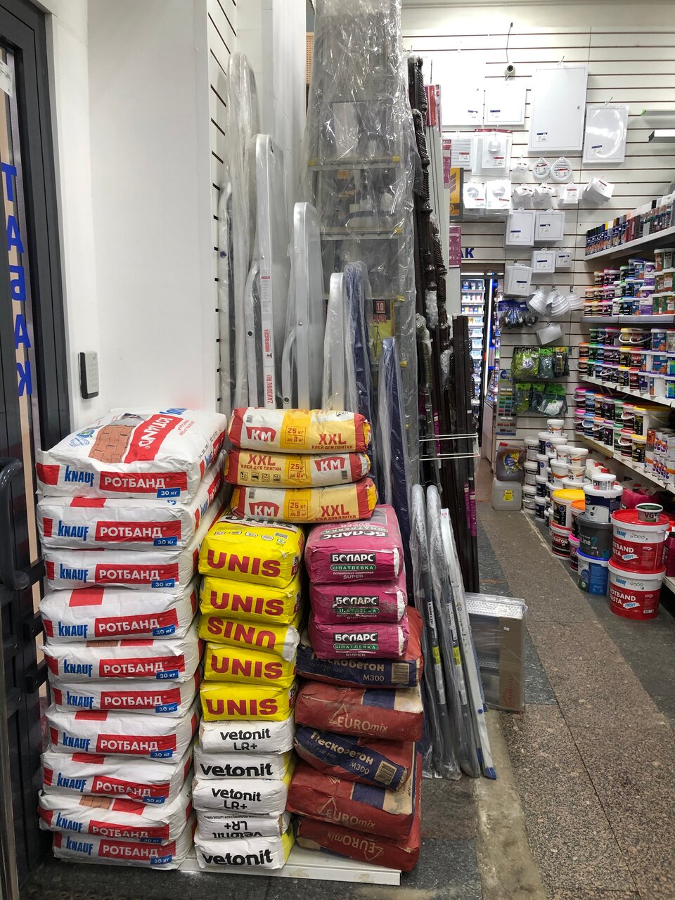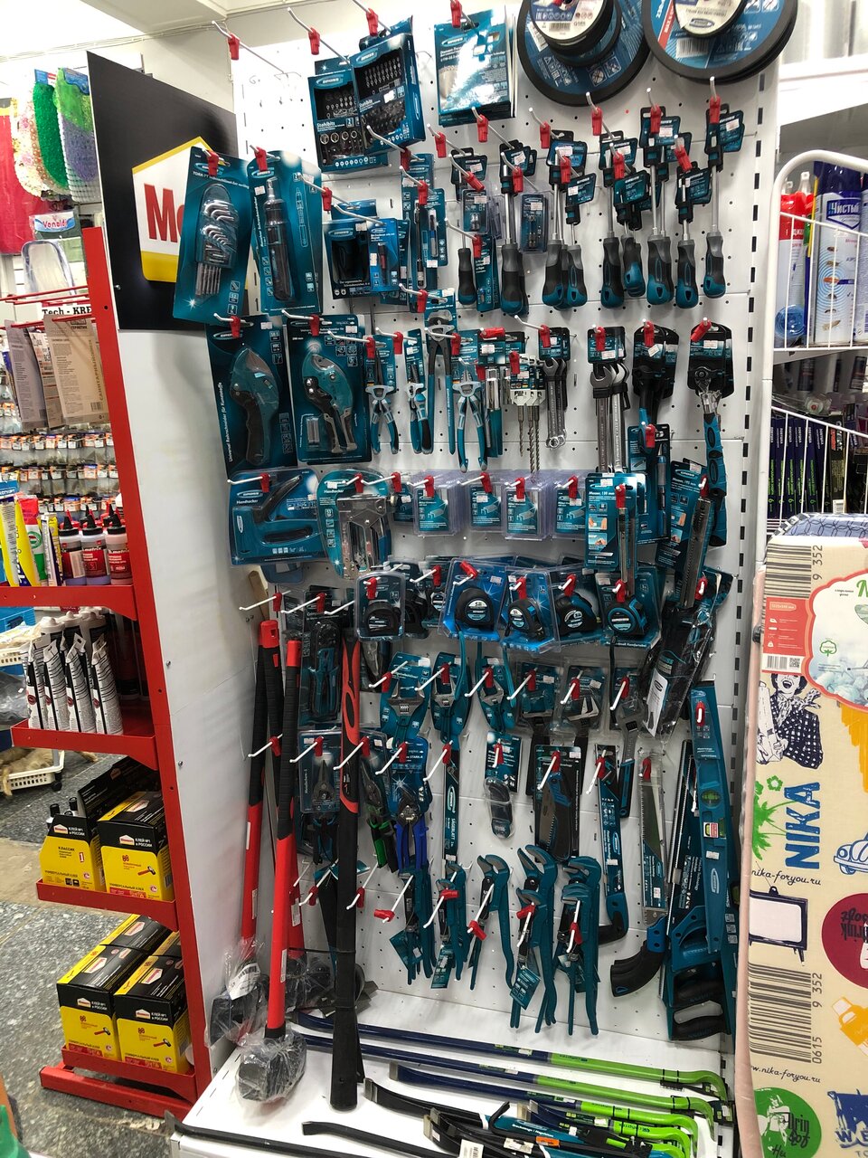 Хороший ассортимент для магазина рядом с домом. В наличии много всего как для ремонта, так и для хозяйственных нужд.