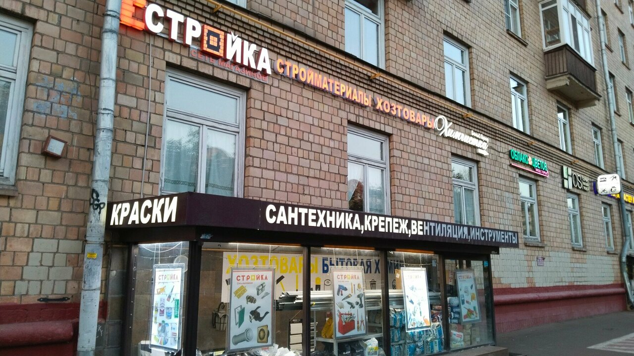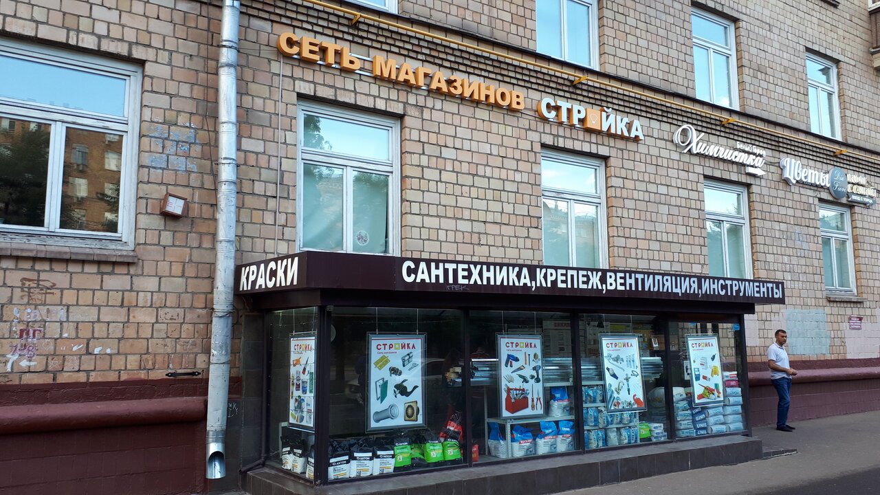 Стройка – строительный магазин в Москве, расположенный по адресу: Комсомольский проспект, 38/16. Ассортимент включает люки и инженерную сантехнику. Режим работы: пн-сб 08:30–20:30, вс 09:00–20:00. Контакты: +7 (925) 639-96-99, +7 (499) 755-69-50 (менеджер), +7 (925) 119-32-30.