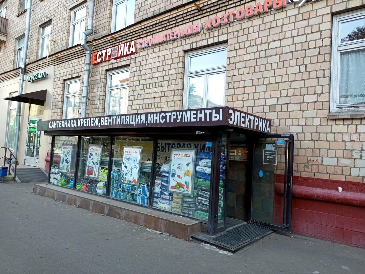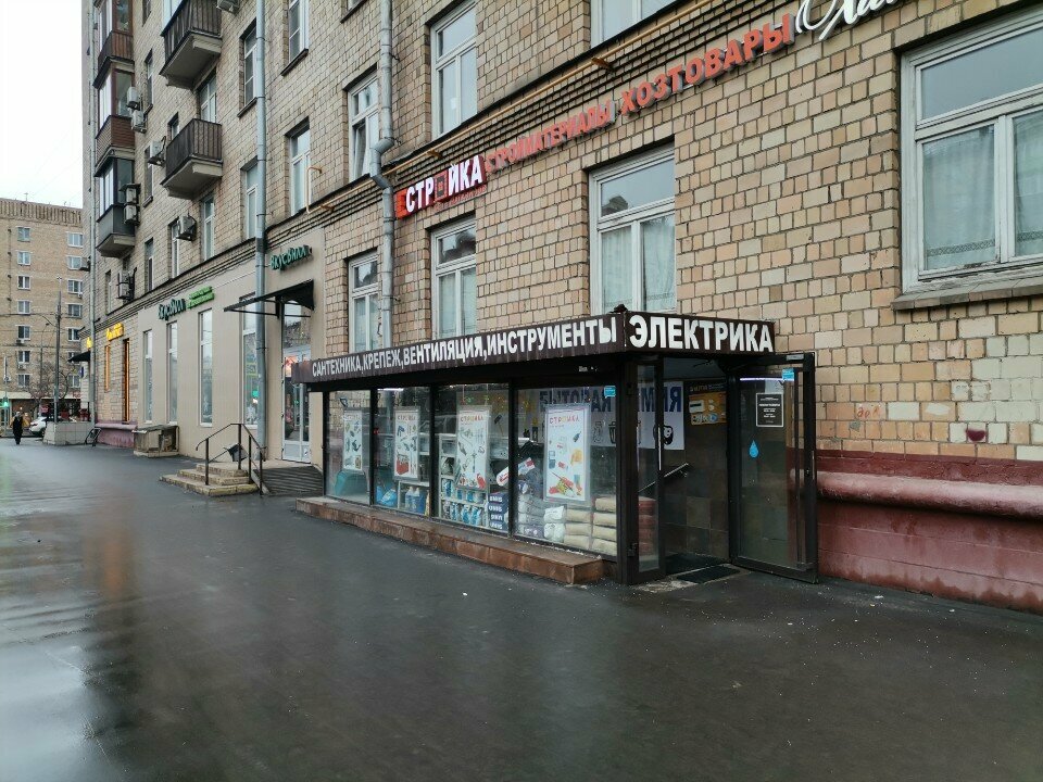 Уголок осознанного бытия… Ой, то есть, кладезь всего полезного для быта. Конечно, строительство дома обойдется вам в копеечку, если задумаете все для него закупать здесь. Но это может быть и обманчивое впечатление. Ну не могут, ведь, в самом деле, в таком магазине в Хамовниках быть еще и цены ниже плинтуса. Скажите спасибо, что такое чудо есть рядом. Магазин очень пригождается, когда что-то надо починить здесь и сейчас, а ехать куда-то далеко не хочется. Ну и более серьезные вещи там продаются, не только для мелкогг ремонта. Немаловажно, что рядом есть другой магазин: АМ. Так сказать, все рядом для мамкиных/женкиных ‘стоителев’. И гайку прикрутить, и тут же отметить это дело.