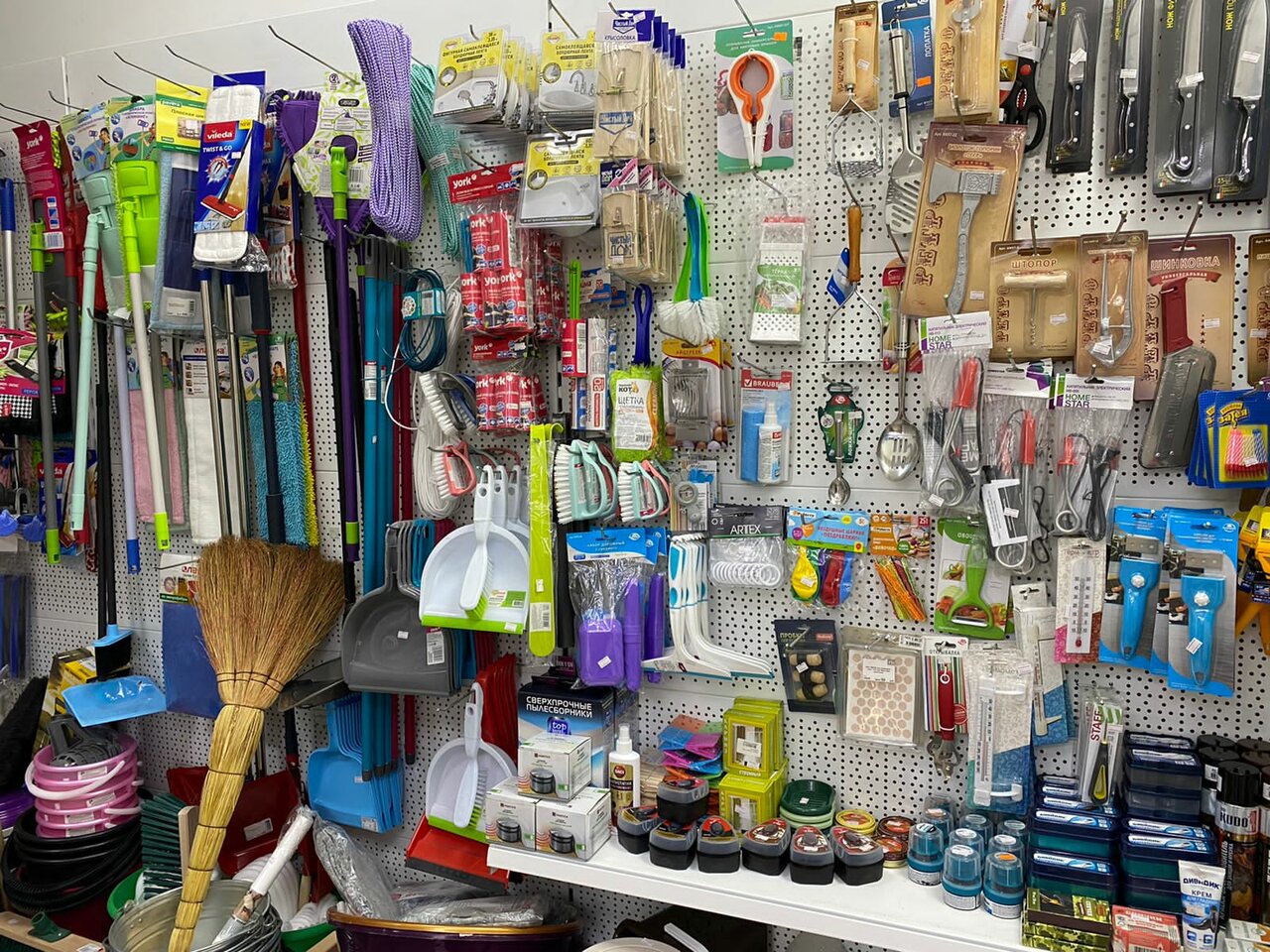 Очень большой выбор хозяйственных товаров, но очень тесно, узкие проходы