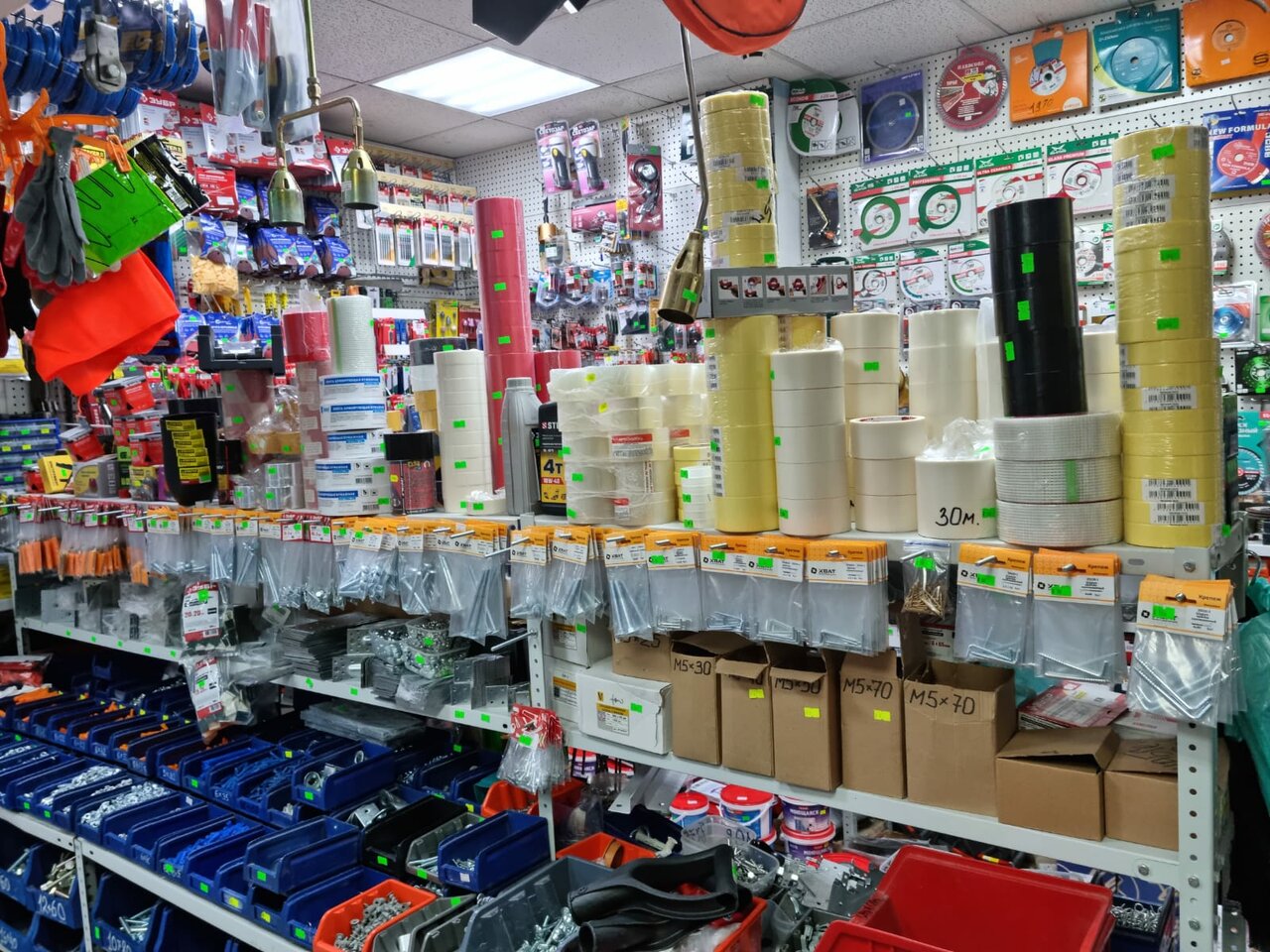 Очень выручает, особенно если нужны саморезы наразвес. Ассортимент богатый, цены адекватные, расположение удобное. И самое важное — график работы, успеваешь зайти после каторги на пятидневке.
