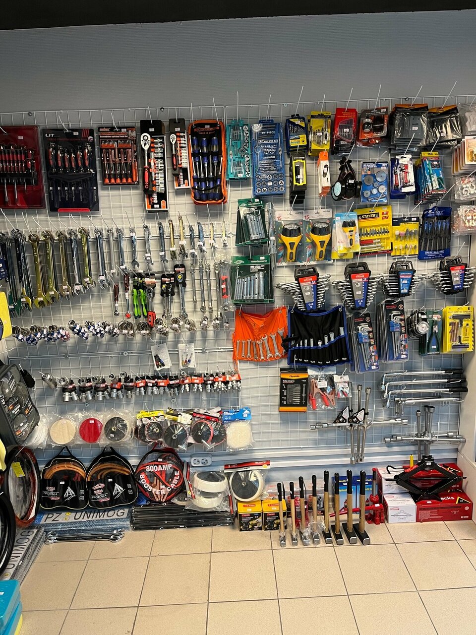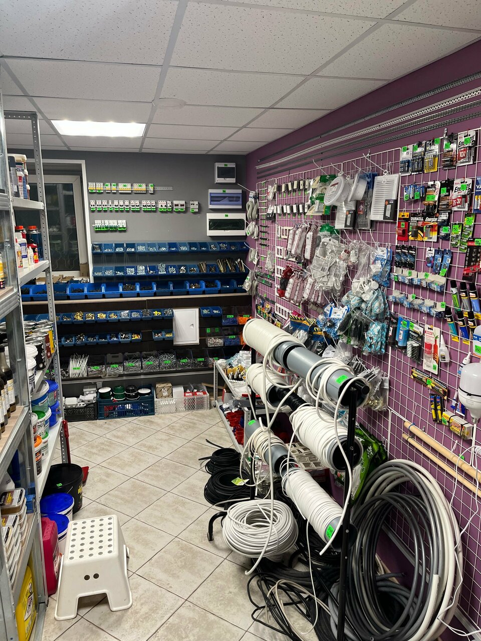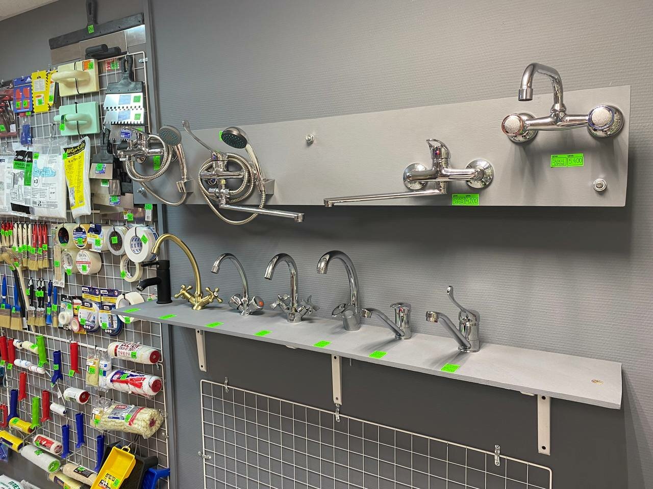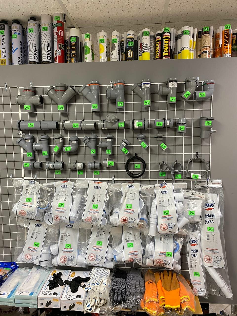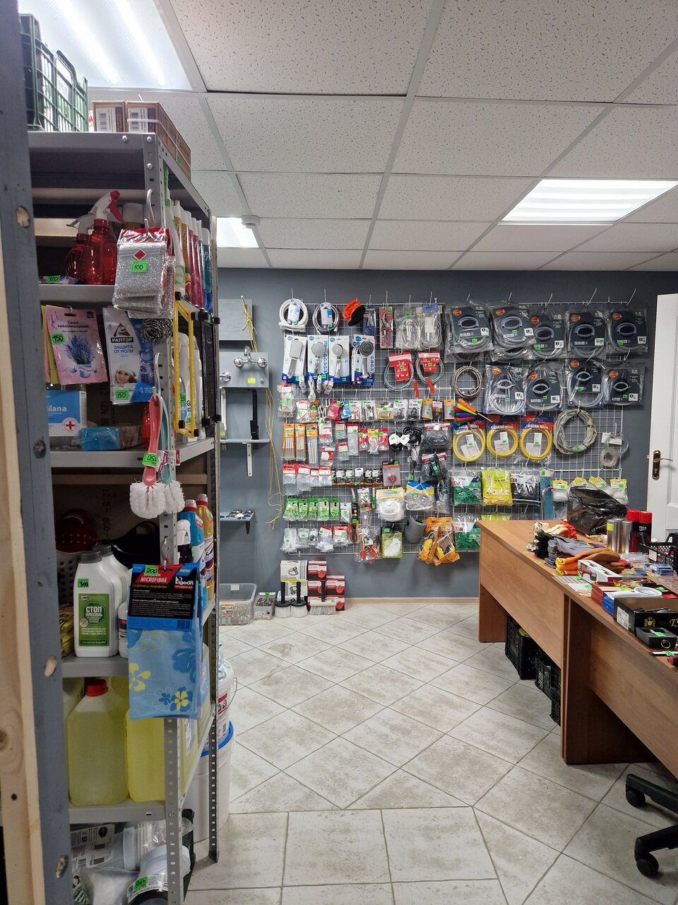 - Широкий выбор для разных видов работ (сантехника, электрика, инструменты и т. д.)